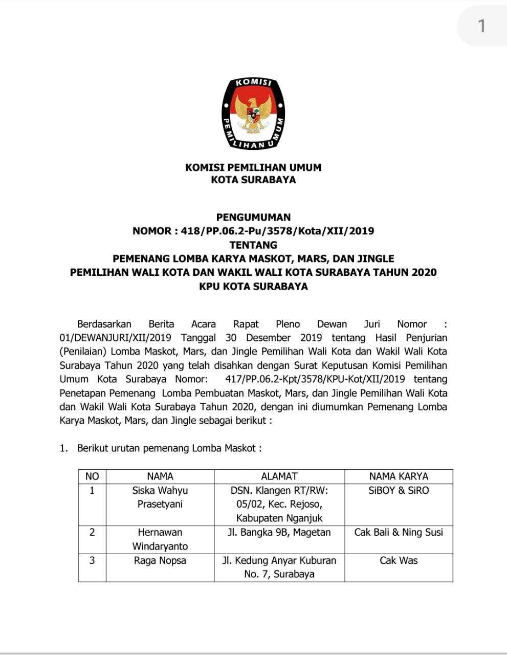 Diterima langsung oleh Ketua KPU Surabaya, bersama Anggota Komisioner KPU Surabaya, Muh. Kholid Asyadulloh, Soeprayitno, Naafilah Astri Swarist, dan Subairi, serta Sekretaris KPU Surabaya, Sunarno Aristono dan para Kasubbag.