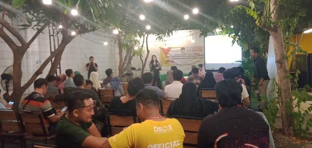 Hupmas, SURABAYA – Selasa siang (24/12/2019), KPU Surabaya bersama Forum Peduli Demokrasi gelar Sosialisasi Tatap Muka untuk Pemilihan Wali Kota dan Wakil Wali Kota Surabaya Tahun 2020 di Café Brother, Jl. Sidosermo 2/48, Surabaya. Muh. Kholid Asyadulloh, Anggota KPU Surabaya Divisi Teknis Penyelenggaraan didapuk menjadi narasumber. Dalam materinya Kholid menyampaikan poin-poin penting mengenai Pemilihan Wali Kota dan Wakil Wali Kota Surabaya Tahun 2020. Seperti syarat bagi Pemilih, tahapan dalam Pemilihan serta ajakan untuk berpartisipasi pada Pilwali 2020. “Pilwali akan dilakukan Pemilihannya pada tanggal 23 September 2020, jangan lupa untuk menggunakan hak pilihnya dengan sebaik mungkin dan jangan lupa pula pahami syarat untuk bisa menjadi pemilih,” ungkap Kholid. Lebih lanjut, Kholid juga membahas mengenai bahaya dari money politic serta berpesan agar masyarakat tetap bijak menggunakan hak pilihnya tanpa terpengaruh dengan kampanye hitam, berita hoaks, dan money politic. Hadir menjadi narasumber dari luar, Moufti Ash Shidiqi dari kalangan akademisi menyampaikan dan menegaskan bahaya dari money politic serta mengajak peserta yang mayoritas pemilih pemula ini untuk mensukseskan Pilwali Kota Surabaya 2020 dan bersama-sama masyarakat menghindari money politic dan black campaign. (esw/guh/esar)