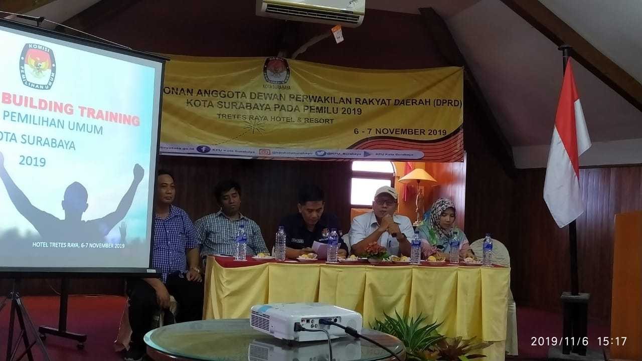 Hupmas, SURABAYA – Kamis (07/11/2019) Memasuki hari ke-2 Kegiatan Evaluasi dan Pengembangan Penguatan Kapasitas SDM yang dilaksanakan KPU Surabaya di Hotel Tretes Raya Jl. Malabar No.168-169, Semeru, Tretes, Kec. Prigen, Pasuruan dibuka dengan senam pagi ceria.