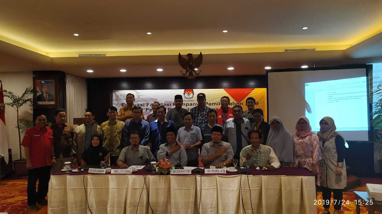 Hupmas, SURABAYA – Memasuki masa tahapan akhir dari Pemilu tahun 2019, KPU Surabaya laksanakan kegiatan Evaluasi Fasilitasi Kampanye yang telah dilakukan oleh KPU Surabaya kepada peserta pemilu dan stakeholder di Hotel Elmi Surabaya. Divisi Sosialisasi, Pendidikan Pemilih dan Partisipasi Masyarakat KPU Provinsi Jawa Timur, Gogot Cahyo Baskoro, yang didapuk menjadi narasumber menghimbau kepada peserta rapat jika dalam masa kampanye tersebut KPU Surabaya ada yang kurang maksimal, silakan disampaikan melalui acara ini dan akan kami teruskan sebagai bahan laporan dan pembelajaran kedepan. “Silakan disampaikan jika ada persoalan dan masalah terkait kurang maksimalnya pelaksanaan fasilitasi kampanye. Kritikan sepahit apapun silakan disampaikan, agar menjadi bahan evaluasi kedepan,” ujarnya. Bawaslu Surabaya, dalam hal ini diwakili oleh Hidayat lebih menekankan pelaksanaan kampanye, seperti banyak peserta pemilu yang tidak menyampaikan pemberitahuan ketika melaksanakan kampanye secara langsung. “Banyak masukan dan kritikan baik dari perwakilan partai politik, lembaga pemantau pemilu, dan juga media/wartawan. Seperti masa tahapan masa kampanye yang dirasa terlalu panjang bagi peserta politik,” terangnya Dari media sendiri mengaku kurang mendapatkan peran dan kurang dilibatkan pada tahapan Pemilu. Selain masukan yang disampaikan langsung dalam acara, peserta bisa menyampaikan daftar inventaris masalah dan rekomendasi ke KPU Surabaya melalui formulir yang sudah dibagikan untuk selanjutnya dihimpun oleh panitia. (guh)
