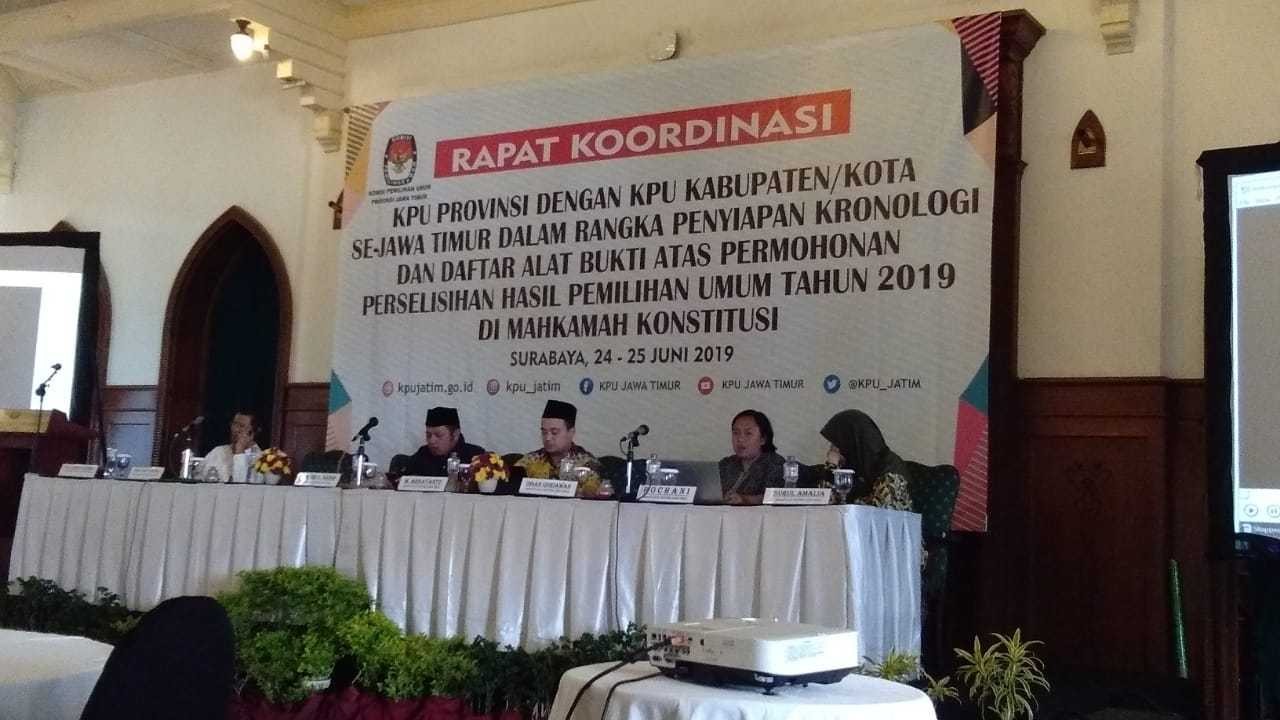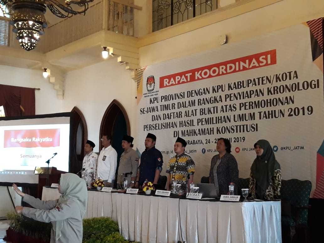 Hupmas, SURABAYA – Kamis siang, (27/06/2019), KPU bersama Pemerintah Kota (Pemkot) Surabaya menggelar Rapat Koordinasi (rakor) Pemberhentian Anggota DPRD Kota periode 2014-2019 dan Pelantikan Anggota Legislatif (Aleg) periode 2019-2024. Rakor berlangsung di ruang Asisten 1 Sekretaris Kota (Sekkota) Bidang Pemerintahan. Hadir dalam rapat itu Asisten 1 Sekkota Bidang Pemerintahan Sekkota Yayuk Eko Agustin, Kepala Bakesbang Linmas Eddy Christijanto, serta Sekretaris DPRD Surabaya Hadi Siswanto Anwar. Dari KPU Surabaya hadir anggota KPU yang membidangi Divisi Hukum dan Pengawasan Soeprayitno dan Divisi Perencanaan, Data, dan Informasi, Naafilah Astri Swarist. Kepala Bakesbang Linmas Surabaya, Eddy Christijanto serta Sekretaris DPRD Hadi Siswanto Anwar menyampaikan jadwal pemberhentian dan pelantikan Aleg pada 23 Agustus 2019. “Ini sehubungan dengan habisnya periodesasi anggota dewan 2014-2019 pada tanggal tersebut, 23 Agustus 2019,” kata Eddy Christijanto yang dikuatkan Hadi Siswanto Anwar. Hadi menambahkan, jadwal diperlukan pihaknya terkait persiapan. Salah satunya pengukuran jas Aleg yang akan dilantik. Mengenai usulan jadwal tersebut, Divisi Hukum dan Pengawasan KPU Surabaya Soeprayitno menegaskan pihaknya belum bisa memberi masukkan sehubungan jadwal pelantikan. “Sementara ini KPU Surabaya masih menghadapi gugatan PHPU (Perselisihan Hukum Pemilihan Umum) terkait pemilu DPRD kota. Pria yang akrab disapa Nano ini menjelaskan jika Buku Register Perkara Konstitusi (BRPK) atas PHPU tersebut baru akan terbit tanggal 1 Juli 2019. Dan sidang pendahuluan dijadwalkan 7 Juli 2019. “Sambil menunggu proses di MK, KPU Surabaya menyiapkan dokumen pelantikan. Sedangkan Pemkot koordinasi dengan gubernur terkait penandatanganan Surat Keputusan pelantikan anggota dewan dan koordinasi dengan Ketua Pengadilan Negeri sehubungan pengambilan sumpah, ” tutup Soeprayitno. (al)