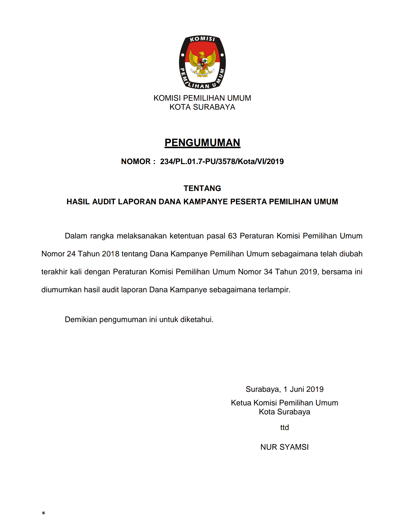 Hupmas, SURABAYA – Rabu siang, (10/07/2019) KPU Surabaya menggelar Rapat Koordinasi Hasil Verifikasi Badan Adhoc Pemilu yang mengalami musibah/kecelakaan kerja (sakit) bersama Panitia Pemilihan Kecamatan (PPK) Pemilu 2019. Agenda rakor yang berlangsung di Lantai 1 KPU Surabaya tersebut merupakan tindak lanjut Surat KPU Provinsi Jawa Timur Nomer: 342/PP.05-SD-Prov/VI/2019 tanggal 21 Juni 2019. Hadir 21 Ketua PPK yang terdiri dari Kecamatan Asemrowo, Benowo, Bulak, Tegalsari, Dukuh Pakis, Gayungan, Genteng, Gubeng, Gunungsari, Karangpilang, Kenjeran, Mulyosari, Rungkut, Sawahan, Simokerto, Semampir, Tambaksari, Tandes, Tenggilis, Wonocolo dan Wonokromo yang mengajukan data penyelenggara yang mengalami sakit pada saat tahapan pemilu maupun ketika proses rekapitulasi hasil penghitungan perolehan suara yang lalu berlangsung. Ketua KPU Surabaya, Nur Syamsi dalam membuka acara menyampaikan harapanya, agar PPK segera melengkapi data sesuai kriteria santunan yang telah ditetapkan oleh KPU RI terkait dengan mengakomodir panitia penyelengara Pemilu 2019 yang tertimpa musibah/kecelakaan kerja dalam Pemilu 2019. “Data kriteria santunan yang telah dipenuhi oleh PPK akan segera Diverifikasi oleh Divisi Sosdiklih, Parmas, dan SDM,” ujarnya. Sementara Divisi Sosdiklih, Parmas dan SDM KPU Kota Surabaya, Subairi menyampaikan agar beberapa nama yang diusulkan PPK untuk mendapatkan santunan agar secepatnya dipenuhi agar mempercepat proses verifikasi dan pengiriman data ke KPU RI. “Ada sekitar 71 usulan penerima santunan yang akan dilaporkan dan diverifikasi oleh KPU RI,” pungkasnya. (Al/esar)