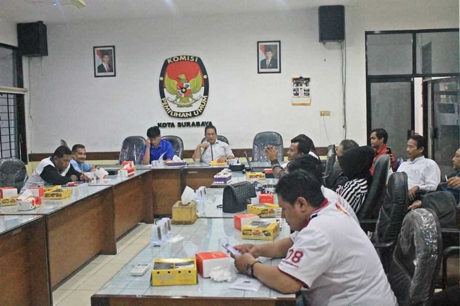 Hupmas, SURABAYA – Senin siang (26/11/2018), KPU Surabaya menyerahkan Fasilitasi Alat Peraga Kampanye (APK) kepada Tim Kampanye Pilpres Tingkat Kota Surabaya. Alat Peraga Kampanye yang difasilitasi berupa baliho sejumlah 10 buah dengan ukuran 3 x 4 meter dan spanduk sejumlah 16 buah dengan ukuran 1,25 x 6 meter. Turut hadir dalam acara Penyerahan Alat Peraga Kampanye tersebut antara lain Badan Pengawas Pemilu (Bawaslu) Kota Surabaya, Perwakilan Polrestabes Surabaya, Perwakilan Polres Tanjung Perak, Bakesbangpol Kota Surabaya, serta Satpol PP Kota Surabaya. “Maksud kami mengundang Bapak dan Ibu sekalian untuk koordinasi bahwa kami sudah memfasilitasi dan menyerahkan APK Pilpres. Untuk pemasangan kami serahkan ke tim paslon,” jelas anggota KPU Surabaya yang membidangi Divisi Sosialisasi, Pendidikan Pemilih, dan Partisipasi Masyarakat dan SDM, Muhammad Kholid Asyadulloh. Acara penyerahan APK diakhir dengan tanda tangan Berita Acara Penyerahan oleh Tim Kampanye dan juga Bawaslu Kota Surabaya. Sementara itu, Bawaslu memberikan himbauan agar dalam pemasangan menaati peraturan dan apabila ada yang melanggar kami akan menertibkan bersama pihak terkait. Lebih lanjut penyerahan fasilitasi APK hari ini merupakan terakhir dan sekaligus selesainya seluruh fasilitasi APK baik parpol dan Dewan Perwakilan Daerah (DPD) tingkat Kota Surabaya yang telah dilaksanakan pada tanggal 23 Oktober 2018 yang lalu. (guh/esar/mka)