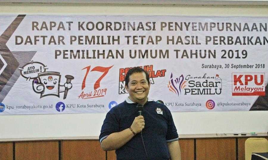 Hupmas, SURABAYA – Sabtu pagi (30/09/2018), KPU Surabaya mengundang Ketua dan Anggota Divisi Program dan Data Panitia Pemilihan Kecamatan (PPK) se-Kota Surabaya untuk menghadiri Rapat Koordinasi (Rakor) Penyempurnaan Daftar Pemilih Tetap Hasil Perbaikan (DPTHP)-1 Pemilihan Umum Tahun 2019.