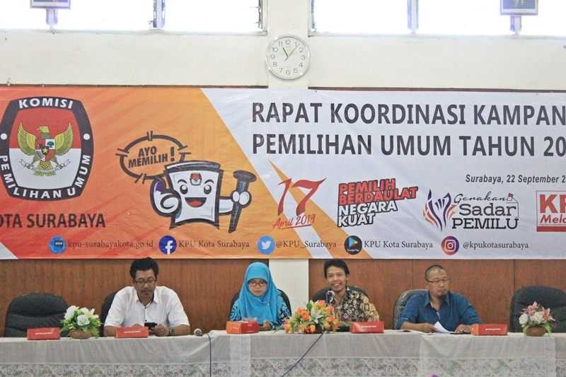Rakor hari ini dibuka oleh Anggota KPU Surabaya Divisi Teknis, Nurul Amalia. Kemudian dilanjutkan dengan pemaparan materi kampanye Pemilu 2019 oleh Divisi SDM dan Partisipasi Masyarakat, Muh. Kholid Asyadulloh.