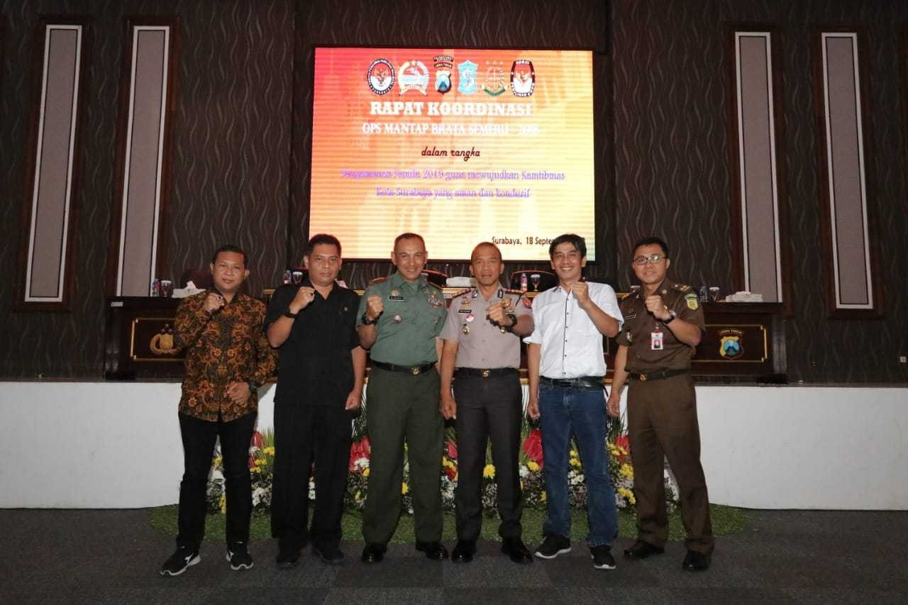 Hupmas, SURABAYA – Selasa pagi (18/09/2018), bertempat di Gedung Bhara Daksa Polrestabes Kota Surabaya, dilaksanakan Rapat Koordinasi (Rakor) dalam rangka Ops Mantab Brata Semeru 2018. Rapat ini dilaksanakan dalam rangka koordinasi pengamanan Pemilu 2019. Hadir dalam rapat terebut, perwakilan dari Kejaksaan Negeri Surabaya, Ketua KPU Surabaya, Ketua Bawaslu Kota Surabaya, perwakilan Pemerintah Kota Surabaya dan juga seluruh Kapolsek di wilayah Polres Surabaya. Acara dibuka tepat pukul 08.30 WIB oleh Kapolres Surabaya, Kombespol Rudi Setiawan. Dalam sambutannya Kapolres menyampaikan bahwa tahun 2018 adalah tahun menjelang dilaksanakan Pemilu serentak 2019. “Untuk itu koordinasi antar lembaga terkait menjadi sangat penting untuk menjaga kondusivitas keamanan di Kota Surabaya. Kondusivitas keamanan yang telah terjaga selama ini terutama pada saat Pilgub 2018 harus terus dirawat, apalagi menjelang dan saat pelaksanaan Pemilu serentak,” kata Kapolres Surabaya. Kondusivitas keamanan, lanjut Kombespol Rudi, menjadi sangat vital bagi kehidupan masyarakat. Terkhusus masyarakat Surabaya, karena dengan kondisi keamanan yang baik seluruh roda kehidupan, mulai dari roda pemerintahan sampai roda ekonomi akan berjalan dengan baik. “Pemilu yang kondusif akan memberikan jaminan pelayanan publik secara optimal. Dan juga akan memberikan jaminan kepada para pelaku ekonomi di kota Surabaya bahwa apa yang dilakukan akan berjalan dengan baik dan akan memberikan keuntungan bagi usahanya. Tentu ini akan berdampak terhadap roda ekonomi masyarakat Surabaya secara luas.” Sementara pada salah satu sesi pemaparan materi koordinasi, Ketua KPU Surabaya menyampaikan hal-hal yang terkait dengan tahapan dan pelaksanaan pemilu baik yang sudah berjalan maupun yang akan berjalan. Terutama menjelang masa kampanye yang dimulai tanggal 23 September 2018 atau 3 hari setelah penetapan pasangan calon Presiden dan Wakil Presiden dan penetapan Daftar Calon Tetap (DCT) anggota Legislatif. Nur Syamsi juga menyampaikan pentingnya menjaga netralitas dan integritas bagi penyelenggara Pemilu. “Setelah kita mengikrarkan diri sebagai pelayan publik maka sebagian besar waktu dan tenaga kita akan dicurahkan untuk publik.” Satu-satunya hal yang tersisa dalam pelayanan publik penyelenggaraan pemilu adalah netralitas dan integritas. Begitu penyelenggara tidak netral dan tidak mampu menjaga integritasnya, lanjut Nur Syamsi, maka akan bisa menjadi pemicu berbagai permasalahan sosial politik berikutnya. “Misalnya gugatan-gugatan sampai kerusuhan sosial yang timbul akibat ketidakpuasan peserta pemilu terhadap perilaku penyelenggara pemilu yang tidak netral dan tidak mampu menjaga integritas,” jelas Syamsi. “Untuk itu kami berharap bantuan dari semua pihak, terutama stakeholder terkait termasuk kepolisian, untuk turut serta mengingatkan, mengawasi serta menjaga perilaku penyelenggara yang tidak netral dan tidak berintegritas,” tandas Syamsi. (sym/mka)