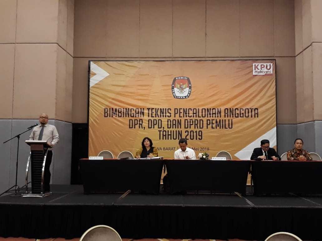 Bimtek digelar dalam rangka persiapan pelaksanaan pengajuan bakal calon Anggota DPR, DPRD Provinsi, dan DPRD Kabupaten/Kota serta pendaftaran bakal calon Anggota DPD dalam Pemilu 2019.