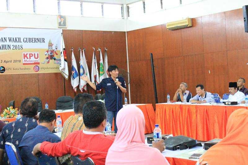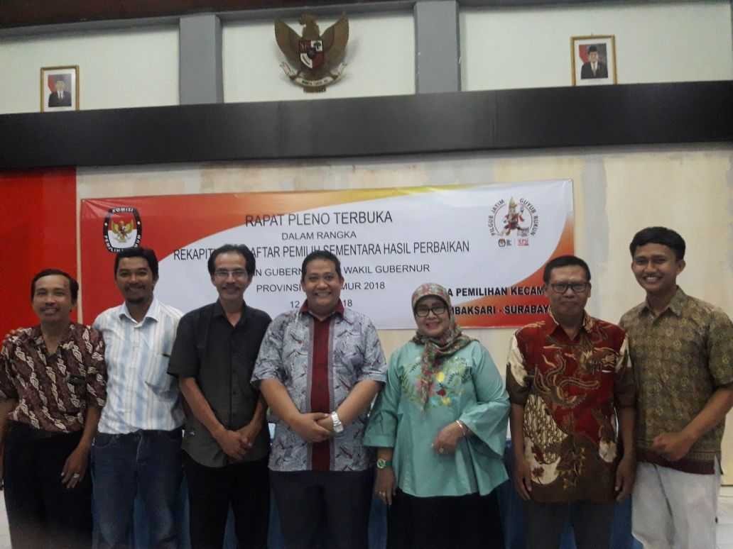 Hupmas, SURABAYA – Kamis (12/04/2018), dalam rangka rekapitulasi Daftar Pemilih Sementara Hasil Perbaikan (DPSHP) dalam Pemilihan Gubernur dan Wakil Gubernur Provinsi Jawa Timur Tahun 2018, Panitia Pemilihan Kecamatan (PPK) di wilayah kerja Kota Surabaya menggelar Rapat Pleno Terbuka. Rapat Pleno Terbuka tersebut diadakan di aula masing-masing kecamatan.