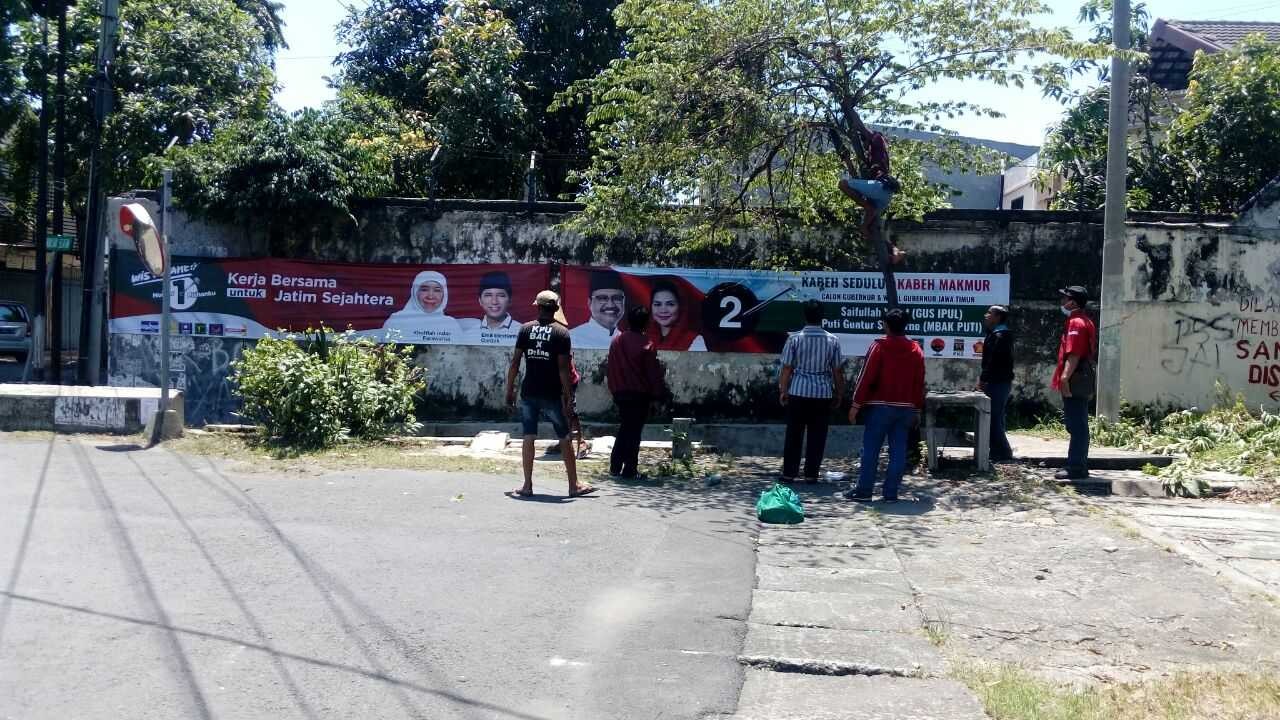 Hupmas, SURABAYA – Pemasangan Alat Peraga Kampanye (APK) di Kota Surabaya telah dimulai pada hari ini (06/04/2018). Pemasangan APK tersebut akan dilakukan selama 11 (sebelas) hari ke depan dengan 3 (tiga) kecamatan per harinya di titik-titik lokasi yang telah ditentukan. Hari ini yang mendapat giliran pemasangan pertama kali adalah Kecamatan Wonocolo, Tenggilis Mejoyo, dan Rungkut.