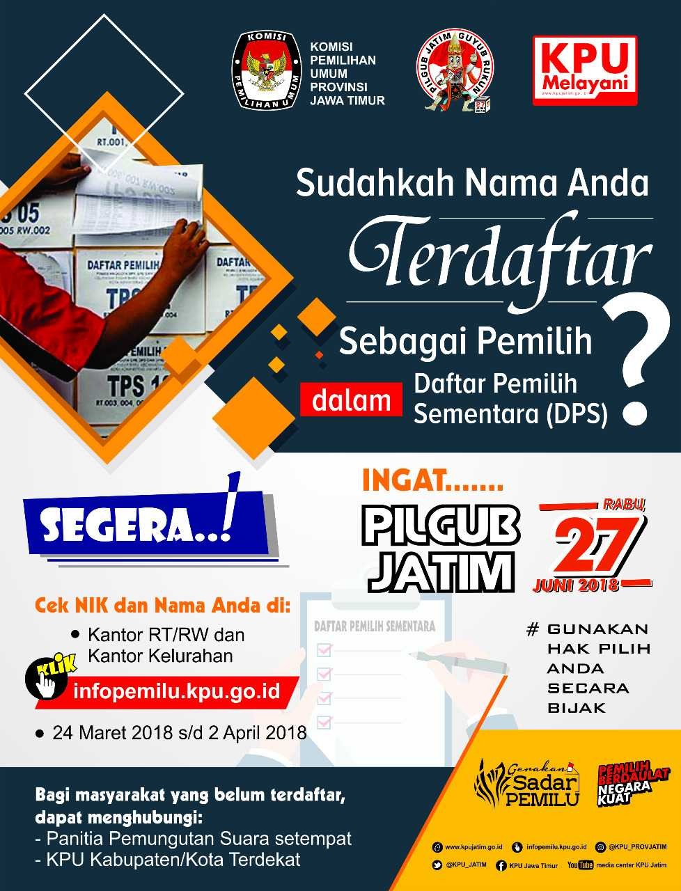 Hupmas, SURABAYA – Seperti yang telah diketahui, selama 10 (sepuluh) hari sejak Sabtu (24/03/2018) lalu, KPU Surabaya mengumumkan Daftar Pemilih Sementara (DPS) dalam Pemilihan Gubernur dan Wakil Gubernur Provinsi Jawa Timur Tahun 2018 yang dapat dilihat di kelurahan. Misalnya adalah Kelurahan Wonokromo yang sejak semalam sebelum hari pertama pengumuman DPS, Panitia Pemungutan Suara (PPS) Wonokromo melakukan persiapan dengan menempel lembar DPS di papan pengumuman kantor kelurahan. Proses pengumuman tersebut menjadi istimewa karena diliput oleh salah satu TV nasional. Menurut Divisi Hukum, Purnomo Satriyo Pringgodigdo yang menjadi narasumber pada saat itu, cara mudah untuk mengetahui nama kita sudah terdaftar sebagai DPS adalah dengan cara mengecek nama kita di kolom Tempat Pemungutan Suara (TPS) nomor sekian sebagaimana kita terdaftar di pemilihan sebelumnya. “Ada pembatasan jumlah pemilih di tiap TPS, jadi sangat mungkin nama-nama pemilih terpisah oleh TPS meskipun ada di 1 KK (Kartu Keluarga) yang sama. Oleh karena itu, durasi dan waktu tahapan pengumuman DPS bersamaan dengan tahapan tanggapan masyarakat,” papar Purnomo. Selain itu, pria yang lahir di Bulan Oktober ini menambahkan bahwa dirinya sebagai perwakilan dari KPU Surabaya, mengucapkan terima kasih ke jajaran Pemerintah Daerah (Pemda) khususnya lurah yang sudah membantu persiapan Pilkada Serentak 2018 secara maksimal. “Kami minta tolong lurah memfasilitasi masyarakat yang belum melakukan perekaman KTP Elektronik. Kami juga minta tolong agar PPS dan lurah agar memfasilitasi warga yang mengurus surat pindah pilih (A5),” tegas Pak Pur demikian yang akrab disapa. Sementara itu, PPS Wonokromo mengaku secara bergantian akan stand by di kantor PPS Kelurahan untuk memfasilitasi warga yang menanyakan status namanya terdaftar di DPS atau belum. Pihak kelurahan pun menghimbau masyarakat yang baru berusia 17 tahun pada tahun ini atau pemilih pemula, agar secara aktif mengajukan perekaman KTP Elektronik. (oct/azi)