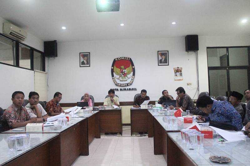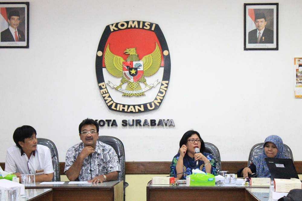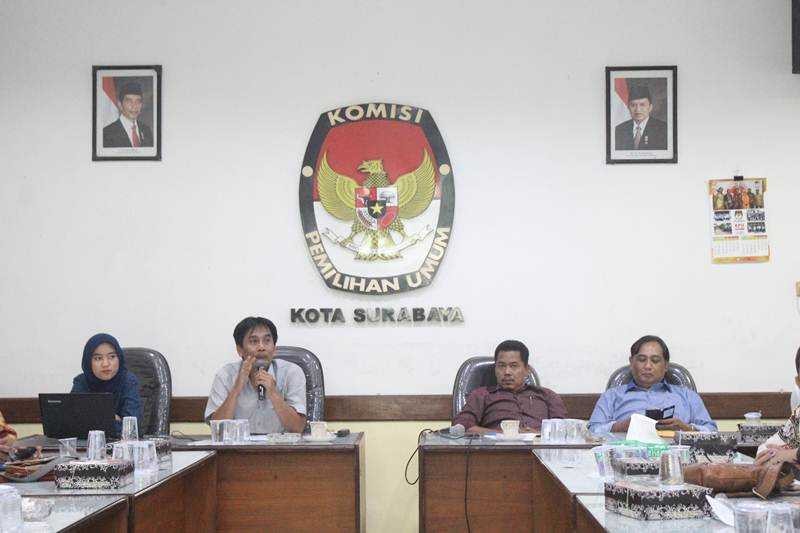 Hupmas, SURABAYA – KPU Surabaya mengundang anggota Panitia Pemilihan Kecamatan (PPK) yang membidangi Divisi Teknis dan Divisi Partisipasi Masyarakat untuk hadir dalam acara Rapat Kerja (Raker) Persiapan Pemilihan Gubernur dan Wakil Gubernur Provinsi Jawa Timur Tahun 2018, Jumat siang (04/05/2018). Ketua KPU Surabaya, Nur Syamsi menyampaikan bahwa raker ini digelar untuk melakukan persiapan baik dari segi Sumber Daya Manusia (SDM) maupun pelaksanaan teknis pemungutan suara mengingat waktu yang sudah berjalan cepat menuju tanggal pelaksanaan Pilgub Jatim 2018 yaitu 27 Juni 2018. Sementara itu, secara kebetulan di hari yang sama KPU Surabaya sedang mendapat kunjungan dari Kepala Biro Teknis Pemilu dan Hubungan Partisipasi Masyarakat KPU RI yaitu Nur Syarifah. Dalam kunjungannya tersebut Bu Inung demikian yang akrab disapa, menyempatkan diri untuk memberikan beberapa arahan terkait dengan Buku Panduan KPPS yang baru saja diterbitkan oleh KPU RI. “Saya cukup mengapresiasi kerja keras kawan-kawan PPK karena dari jauh-jauh hari sudah sinau bareng dengan digelarnya raker ini,” pujinya. Selanjutnya, raker berjalan sesuai dengan rencana awal yang membahas 2 (dua) agenda pokok. Agenda pertama membahas tentang perekrutan Kelompok Penyelenggara Pemungutan Suara (KPPS) yang dipaparkan oleh Ketua KPU Surabaya yang sekaligus membidangi Divisi SDM dan Partisipasi Masyarakat, Nur Syamsi. Agenda kedua membahas tentang teknis pemungutan suara yang dipaparkan oleh Divisi Teknis, Nurul Amalia. (azi/esar)