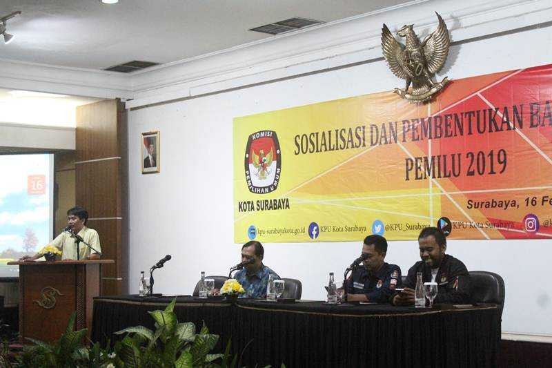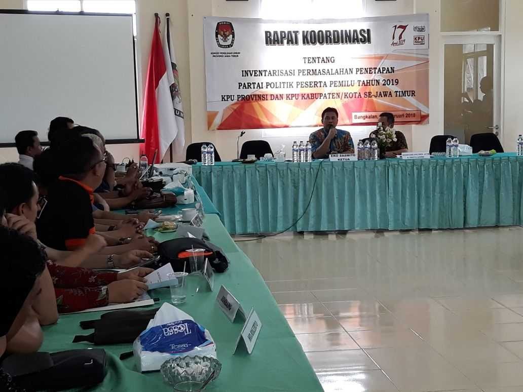 Ketua KPU Provinsi Jawa Timur, Eko Sasmito, memberikan sambutannya di awal acara yang sekaligus membuka acara rakor yang berlangsung di Kantor KPU Surabaya ini.