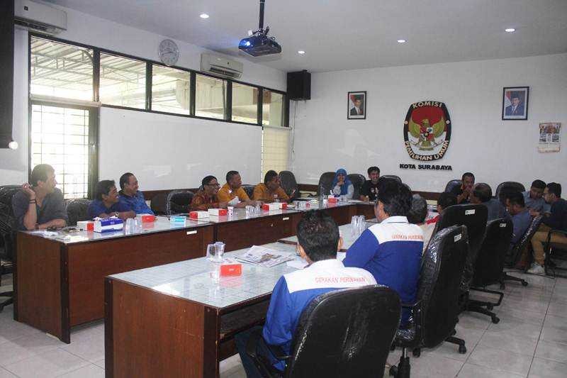 Hupmas, SURABAYA – Setelah melakukan verifikasi kepengurusan terhadap 8 (delapan) partai politik (parpol) calon peserta Pemilu 2019 kemarin, kini giliran 6 (enam) parpol lainnya yang menjalani verifikasi kepengurusan yang dilakukan oleh Komisioner KPU Surabaya beserta Sekretaris. Keenam parpol tersebut di antaranya yaitu Partai Keadilan Sejahtera (PKS), Partai Demokrasi Indonesia Perjuangan (PDI Perjuangan), Partai Kebangkitan Bangsa (PKB), Partai Persatuan Pembangunan (PPP), Partai Hati Nurani Rakyat (Hanura), dan Partai Amanat Nasional (PAN). Selain proses verifikasi faktual, hari ini (31/01/2018) juga masih berlangsung proses verifikasi keanggotaan parpol calon peserta Pemilu 2019. Berbeda dengan verifikasi kepengurusan yang dilakukan oleh Komisioner KPU Surabaya beserta Sekretaris, verifikasi keanggotaan dilakukan oleh sekretariat KPU Surabaya. Setelah berlangsungnya proses verifikasi keanggotaan selama 2 (dua) hari, apabila dalam jangka waktu tersebut masih ada parpol yang jumlah keanggotaannya belum terpenuhi sesuai jumlah sampel yang ditentukan, maka anggota dari parpol yang bersangkutan akan didatangkan yaitu pada tanggal 01 Februari 2018 ke Kantor KPU Surabaya. (azi)