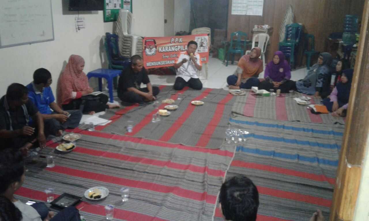 Hupmas, SURABAYA – Bebarengan dengan pemetaan Daftar Penduduk Potensial Pemilihan (DP4) di masing-masing Kelurahan, Panitia Pemilihan Kecamatan (PPK) Karangpilang secara masif menggelar sosialisasi berbasis non anggaran kepada masyarakat umum berkaitan dengan Tahapan Pemilihan Gubernur dan Wakil Gubernur Provinsi Jawa Timur Tahun 2018 yang bertempat di Balai RW 03, Minggu malam (07/01/2018). Acara yang dimulai pada pukul 21.00 WIB tersebut dihadiri oleh kurang lebih 30 (tiga puluh) peserta yang terdiri dari pengurus RT 01, pengurus RW 03, ibu-ibu Pembinaan Kesejahteraan Keluarga (PKK), Karang Taruna, dan tokoh masyarakat Kelurahan Kebraon. Ketua PPK Karangpilang, Rohim, menjelaskan bahwa saat ini tengah berlangsung beberapa tahapan mulai dari perekrutan Petugas Pemutakhiran Data Pemilih (PPDP) yang kemudian berlanjut dengan pencocokan dan penelitian (coklit) serentak pada tanggal 20 Januari 2018. “Saya berharap pada saat coklit berlangsung nantinya, masyarakat dapat memberikan informasi secara transparan sehingga petugas coklit mendapatkan data yang akurat,” terang Rohim. Sosialisasi ini digelar dengan tujuan untuk meningkatkan partisipasi masyarakat dalam Pilkada Serentak Tahun 2018 khususnya warga Kecamatan Karangpilang.