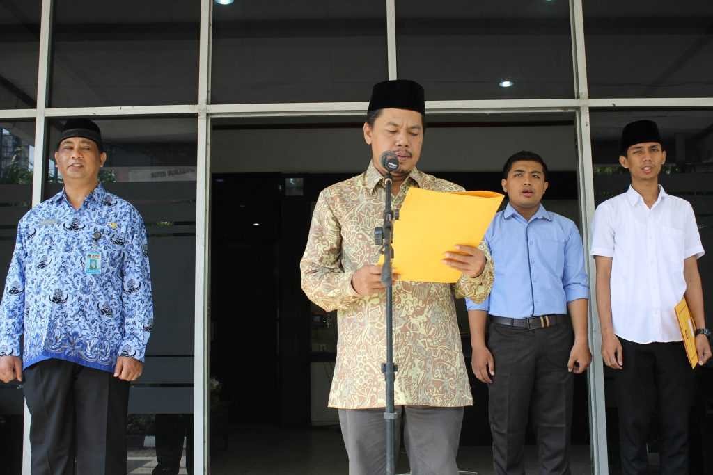 Hupmas, SURABAYA – “Pada hari yang berbahagia ini marilah sejenak kita panjatkan puji syukur kehadirat Allah SWT, Tuhan yang Maha Esa. Atas berkat rahmat dan karunia-Nya, kita dapat memperingati Hari Ulang Tahun (HUT) Ke-46 Korps Pegawai Republik Indonesia (Korpri) dengan keadaan aman dan tentram,” demikianlah sepenggal sambutan yang disampaikan Divisi Umum, Keuangan, dan Logistik, Miftakhul Gufron, di awal sambutannya sebagai pembina upacara. Tepat pada hari ini (29/11/2017), Korpri memperingati dan merayakan ulang tahun ke-46. Disela-sela kesibukan dan padatnya tahapan Pilkada Serentak Tahun 2018 dan Pemilu Tahun 2019, KPU Surabaya menyempatkan untuk melakukan upacara peringatan HUT Korpri yang diikuti seluruh staf baik yang Pegawai Negeri Sipil (PNS) maupun yang bukan. Upacara HUT Korpri kali ini diperingati dengan tema “46 Tahun Korpri Kerja Bersama, Setia Sepanjang Masa”. Tujuan diadakannya peringatan HUT Korpri adalah untuk memantapkan fungsi organisasi Korpri sebagai perekat persatuan bangsa, memantapkan netralitas seluruh anggota terutama mengahadapi Pilkada Serentak Tahun 2018 dan Pemilu Tahun 2019, meningkatkan kesehatan jasmani dan rohani, serta meningkatkan kepedulian sosial dan lingkungan dalam bentuk kegiatan olahraga, bakti sosial, penghijauan, pembinaan mental/rohani. Di akhir sambutannya, Gufron mengajak seluruh staf yang mengikuti upacara untuk senantiasa mengemban tugas dan tanggung jawab sebagai bentuk pengabdian kepada bangsa dan negara demi terwujudnya tujuan dari peringatan HUT Korpri tersebut. (azi/esar)