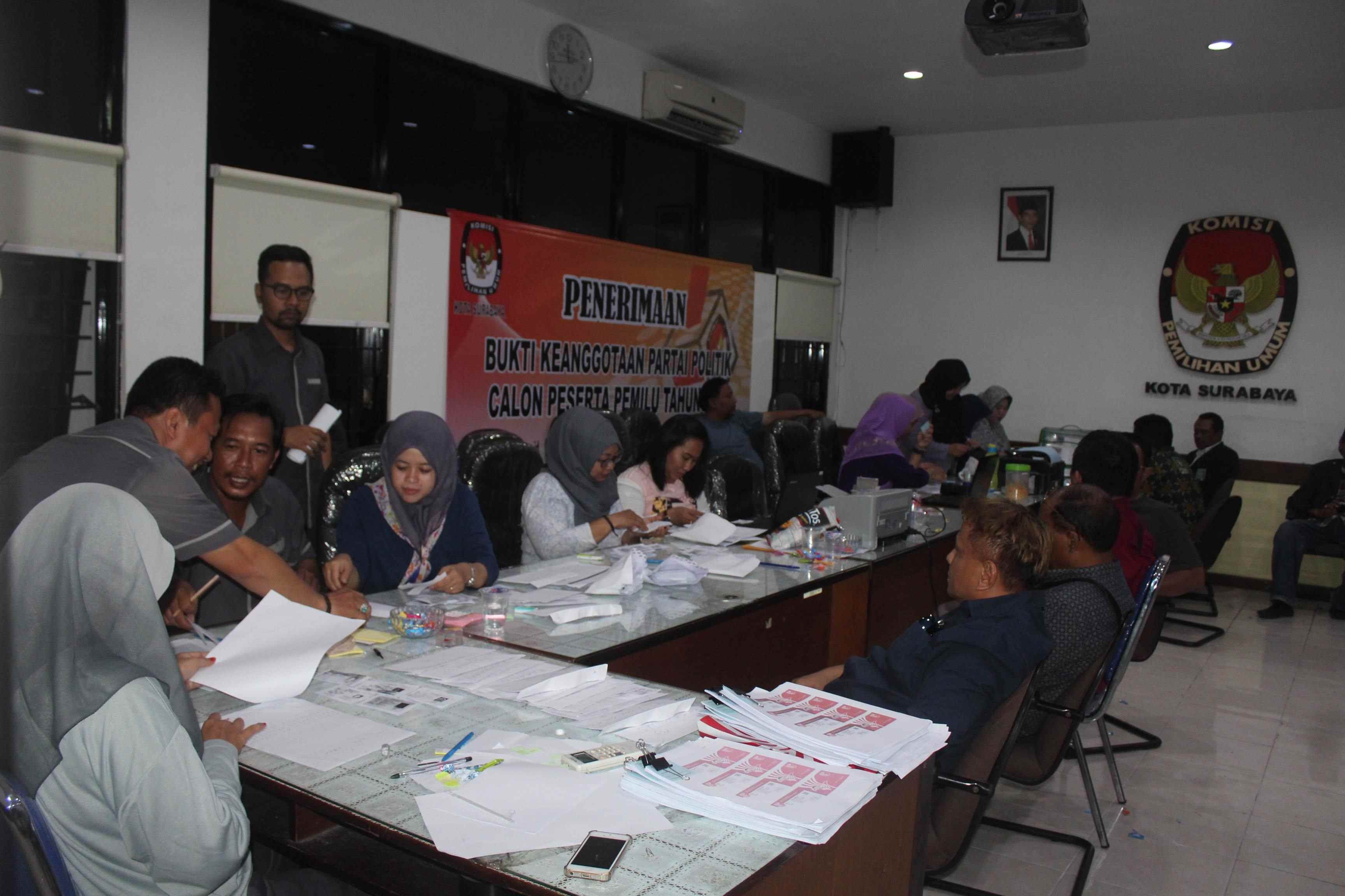 Hupmas, SURABAYA – Tepat pukul 24.00 WIB hari Senin (16/10/2017), proses tahapan pendaftaran partai politik (parpol) dan penyerahan syarat pendaftaran oleh parpol ke KPU telah berakhir. Tahapan pendaftaran parpol sebagai calon peserta pemilu 2019 dilaksanakan secara berjenjang. Yakni untuk pendaftaran tersentral di KPU RI yang dilakukan oleh Dewan Pengurus Pusat (DPP) atau sebutan lain. Sedangkan penyerahan dokumen salinan bukti keanggotaan parpol dilakukan oleh Dewan Pengurus Daerah (DPD)/Dewan Pengurus Cabang (DPC) atau sebutan lain ke KPU Kabupaten/Kota. Sejak dibuka pada tanggal 3 Oktober hingga 16 Oktober 2017, tercatat dari 73 parpol yang terdaftar di Kementerian Hukum dan Hak Asasi Manusia sebanyak 27 parpol yang sudah mendaftar di KPU RI sebagai calon peserta pemilu 2019. Selama sepekan itu pula, KPU Surabaya telah menerima dokumen persyaratan berupa MODEL F2-PARPOL dari DPD/DPC/sebutan lain. Tercatat sudah 14 parpol yang menerima Tanda Bukti Penerimaan Kartu Tanda Anggota (KTA) Parpol dan Kartu Tanda Penduduk (KTP) Elektronik/Surat Keterangan tersebut dari KPU Surabaya. 14 belas parpol yang sudah mendapatkan tanda terima tersebut, di antaranya adalah Partai Persatuan Indonesia (PERINDO), Partai Demokrasi Indonesia Perjuangan (PDIP), Partai Keadilan Sejahtera (PKS), Partai Gerakan Perubahan Indonesia (GARUDA), Partai Nasional Demokrat (NasDem), Partai Hati Nurani Rakyat (HANURA), Partai Demokrat, Partai Golongan Karya (GOLKAR), Partai Amanat Nasional (PAN), Partai Keadilan dan Persatuan Indonesia (PKPI), Partai Berkarya, Partai Gerakan Indonesia Raya (GERINDRA), Partai Persatuan Pembangunan (PPP), dan Partai Indonesia Kerja (PIKA). Satu partai yang masih dalam perbaikan penyerahan MODEL F2-PARPOL adalah Partai Kebangkitan Bangsa (PKB). Namun sekitar pukul 14.00 WIB, Selasa siang (17/10/2017) PKB telah berhasil menerima tanda terima dari KPU Surabaya. Sebagai lembaga negara yang mempunyai tagline “KPU Melayani”, KPU berusaha untuk mengkomunikasikan kepada parpol yang sudah mendaftar di KPU RI namun belum menyerahkan daftar nama anggota parpol serta salinan KTA dan KTP Elektronik/Surat Keterangan ke KPU Kabupaten/Kota. Maka diberi kesempatan dalam waktu 1 x 24 jam terhitung sejak berakhirnya waktu penyerahan dokumen persyaratan tanggal 16 Oktober 2017 pukul 24.00 WIB untuk menyerahkan MODEL F2-PARPOL sampai dengan tanggal 17 Oktober 2017 pukul 24.00 WIB. Hal ini merupakan kebijakan yang ditempuh dari Komisioner KPU RI dengan menerbitkan Surat KPU RI Nomor 585/PL.01.1-SD/03/KPU/X/2017 perihal Pendaftaran Akhir Partai Politik Peserta Pemilu Tahun 2019 tanggal 16 Oktober 2017. “Dari 27 parpol yang mendaftar di KPU RI, masih ada 12 DPD/DPC/sebutan lain di Surabaya yang sampai saat ini belum menyerahkan daftar nama anggota parpol serta salinan KTA dan KTP Elektronik/Surat Keterangan,” jelas Ketua KPU Surabaya, Nur Syamsi. “Kami akan tunggu hingga pukul 24.00 WIB, malam ini, bagi parpol yang hendak menyerahkan dokumen MODEL F2-PARPOL,” jelasnya kembali. (azi/esar)