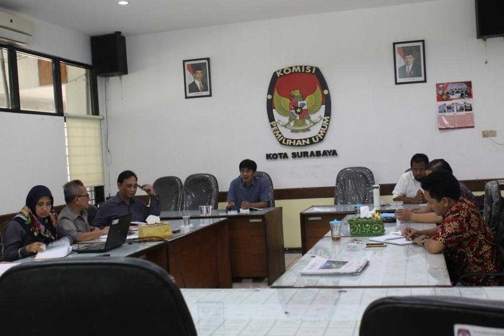 Hupmas, Surabaya-Senin (14/08) kegiatan padat merayap menyambangi KPU Surabaya. Setelah pagi hari rutinitas diawali dengan dilaksanakannya Apel Pagi yang kemudian disusul dengan Rapat Pleno rutin dan Diskusi Publik dengan mendatangkan narasumber August Mellaz (Direktur Sindikasi Pemilu dan Demokrasi), aktivitas di hari Senin masih dilanjut dengan menerima audiensi dari jajaran pengurus DPC Partai Demokrat Kota Surabaya. Kunjungan DPC Partai Demokrat Kota Surabaya yang dikomandoi langsung oleh Ratih Retnowati, selaku Ketua tersebut adalah dalam rangka diskusi tentang perkembangan regulasi pemilu 2019, verifikasi partai politik, permohonan Komisioner KPU Surabaya sebagai narasumber sosialisasi pelaksanaan pemilu, dan informasi jumlah daerah pemilihan (dapil). “Kedatangan kami selain untuk berdiskusi langsung dengan KPU Surabaya sebagai penyelenggara Pemilu terkait perkembangan regulasi pemilu 2019, juga untuk menyerahkan Surat Keputusan Dewan Pimpinan Pusat Partai Demokrat Nomor:52/SK/DPP.PD/DPC/VI/2017 Tentang Susunan Kepengurusan Dewan Pimpinan Cabang Partai Demokrat Kota Surabaya Periode 2017-2022,” jelas Sekretaris DPC Partai Demokrat Kota Surabaya, H. Deddy Prasetyo mewakili pengurus lain. Menanggapi hal tersebut, Ketua KPU Surabaya, Nur Syamsi, menyambut hangat kedatangan pengurus DPC Partai Demokrat Kota Surabaya yang ingin berdiskusi dengan jajaran KPU Surabaya. “Selama ini Kami tidak pernah menutup ruang diskusi dengan pihak manapun. Bahkan saat ini (Senin, 14/08) di KPU Kota Surabaya juga sedang berlangsung kegiatan Diskusi Publik dengan peserta dari masyarakat umum,” papar pria kelahiran asal Lamongan ini. Sementara itu, terkait dengan perkembangan regulasi pemilu 2019 dan simulasi dapil, Divisi Teknis, Nurul Amalia, menyampaikan bahwa KPU Surabaya adalah pelaksana Undang-Undang, maka terkait dengan aturan yang mengatur mekanisme penyelenggaraan Pemilu, KPU tunduk dan patuh sepenuhnya terhadap Undang-Undang. (cha)