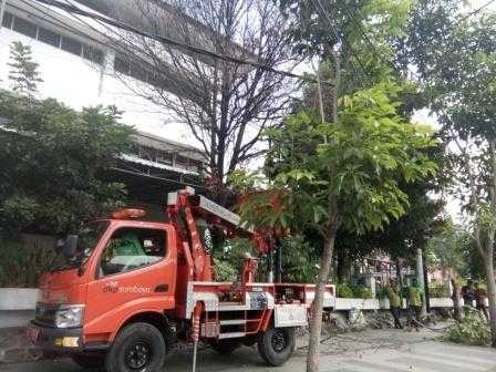 Hupmas, SURABAYA-Dinas Kebersihan dan Ruang Terbuka Hijau Pemerintah Kota Surabaya dengan tanggap menindaklanjuti permohonan KPU Surabaya untuk memangkas dan membersihkan pohon Sawo Kecik yang ada di lingkungan halaman Kantor KPU Surabaya, Jalan Adityawarman, Jum’at (03/03/2017). Dalam melakukan perampingan pohon, ada tiga teknik yang dilakukan oleh tim DKP Surabaya. Yakni perantingan (merapikan ranting-ranting), potong meja alias pangkas meja (memangkas batang pohon yang keropos dan terindikasi penyakitan) dan potong bawah bila pohon tersebut memang rawan tumbang. Sekretaris KPU Surabaya, Sunarno Aristono, mengapresiasi DKP Pemkot Surabaya yang secara sigap menindaklajuti permohonan dari KPU Surabaya untuk memangkas pohon yang kondisinya sudah kering/mati di lingkungan halaman KPU Surabaya. “Sepertiga waktu sehari kita berada di lingkungan kerja dan tentunya hal ini sangatlah berpengaruh bagi kesehatan kita. Bekerja yang sehat tidak hanya didukung oleh badan yang sehat, namun juga lingkungan kantor yang menjadi tempat bekerja juga sehat. Dengan menciptakan lingkungan kantor yang sehat, maka dalam bekerja kita pun juga akan bersemangat,”ungkap lulusan FKH Unair tersebut. (cha)