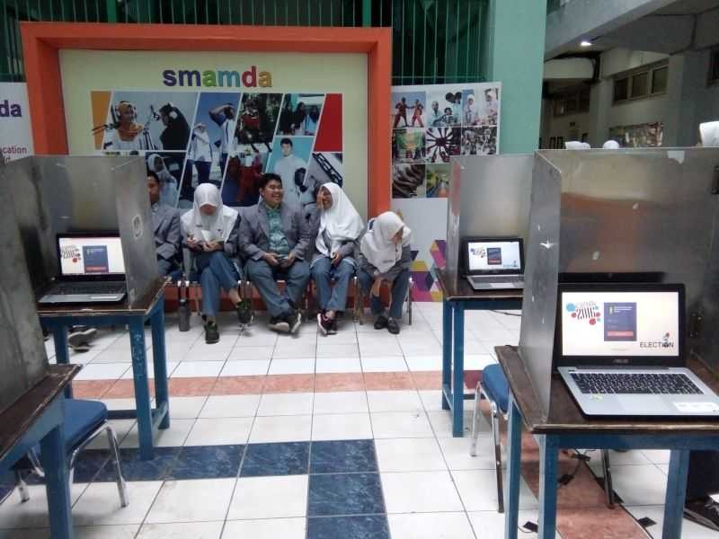 Hupmas, KPU SURABAYA- Pemilihan umum secara elektronik (e-Voting) yang masih menjadi wacana di Indonesia ternyata sudah dipraktekkan oleh SMA Muhammadiyah 2 (SMAMDA) Surabaya. Rabu (09/11/2016), SMAMDA melaksanakan pemilihan formatur Ikatan Pelajar Muhammadiyah (IPM) Ranting SMAMDA melalui e-voting. Penggunaan e-Voting di SMAMDA ini menarik untuk dikaji oleh KPU Surabaya. Oleh karenanya, Komisioner KPU Surabaya Divisi Teknis, Nurul Amalia bersama Kepala Sub Bagian Teknis dan Hupmas KPU Surabaya, Nurita Paramita, melihat secara langsung bagaimana para siswa-siswi SMAMDA memilih formatur IPM Ranting SMAMDA dengan sistem e-Voting tersebut. Pembina IPM Ranting Smamda yang juga Guru Bahasa Inggris, Rimba Ayu, mengungkapkan, pemilihan formatur IPM sedikit berbeda dengan pemilihan Ketua OSIS di sekolah lain. Di SMAMDA, Ketua IPM tidak dipilih secara langsung oleh siswa. Dari tujuh kandidat formatur yang berkompetisi, akan dipilih lima formatur. ”Kelima formatur ini akan berdiskusi sendiri untuk menentukan siapa menjadi apa. Namun, tentu saja dengan pertimbangan dari Dewan Pembina,” papar perempuan yang pernah menjadi Panitia Pemilihan Kecamatan (PPK) Gayungan pada saat Pemilu 2014 lalu. Rimba menjelaskan, panitia menyediakan 15 bilik suara yang dilengkapi dengan laptop. Satu persatu siswa-siswi yang telah memiliki user name dan password memasuki bilik suara yang disediakan panitia. Layaknya pemilu, usai memilih jari pelajar itu dicelupkan ke dalam tinta sebagai tanda sudah memberikan hak suara. Guru Mata Pelajaran TIK SMAMDA, Mustofa Agus menambahkan penjelasan Rimba. Agus menjelaskan bahwa setiap siswa diberi user name dan password yang berbeda dengan siswa lain. User name dan password tersebut digunakan untuk log in. ”Setelah masuk ke sistem, siswa dapat menentukan pilihannya dengan meng-klik nomor kandidat formatur,” ucap pria yang juga membuat sistem e-voting SMAMDA tersebut. Mustofa menambahkan, penggunaan e-Voting tersebut sangat sederhana. ”Sistem ini dijamin aman dan memenuhi asas langsung, umum, bebas, dan rahasia,” imbuh Mustofa. Untuk menggunakan e-Voting hanya diperlukan jaringan internet, komputer, dan software. Mustofa bahkan mempersilakan jika ada sekolah lain yang ingin mengadopsi e-Voting yang dibuatnya. Sementara itu, Nurul Amalia mengungkapkan kebanggaan dan kekagumannya pada penerapan e-Voting di SMAMDA Surabaya. “Suatu terobosan baru. SMAMDA bisa menggelar pemilihan dengan e-Voting dan inovasi tersebut dapat dijadikan contoh bagi sekolah-sekolah lain untuk menggunakan sistem yang sama,”papar Alumni FMIPA Universitas Airlangga Surabaya itu.