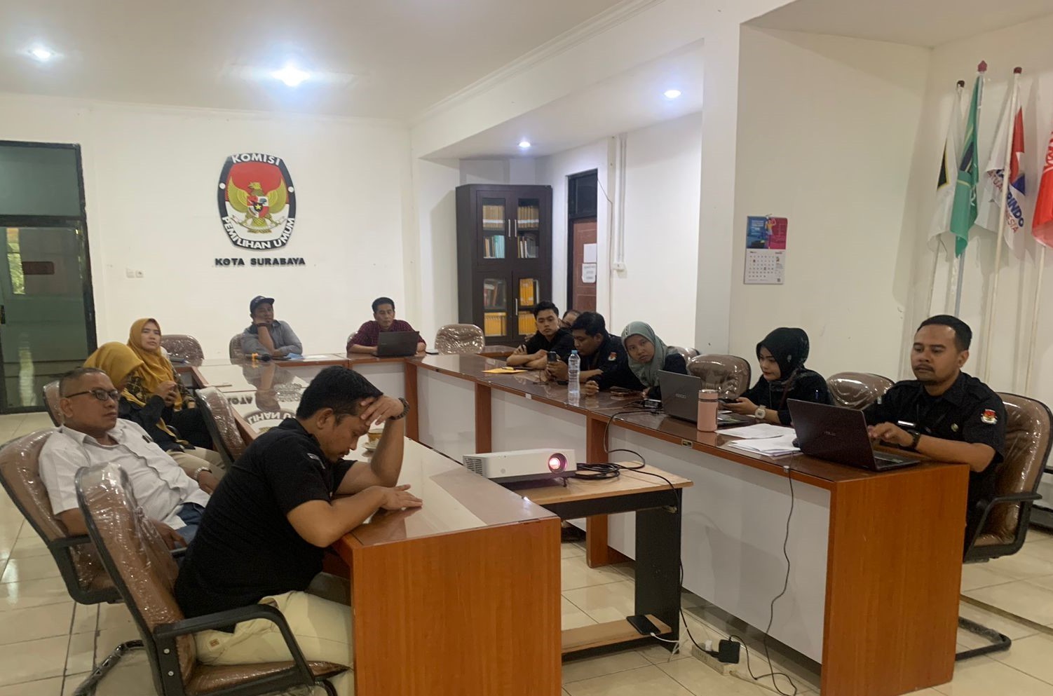 Surabaya, http://kota-surabaya.kpu.go.id - Jumat (13/10), KPU Surabaya menghadiri Rapat Koordinasi Penyusunan Daftar Pemilih Tambahan (DPTb) Pemilu Tahun 2024 yang diselenggarakan di KPU Jawa Timur. Kegiatan yang berlangsung selama 2 hari mulai kemarin (12/10) ini diikuti oleh Ketua Divisi Perencanaan, Data, dan Informasi, Kepala Subbagian Divisi Perencanaan, Data, dan Informasi, serta Operator Sistem Informasi Data Pemilih (Sidalih) KPU Kabupaten/Kota se-Jawa Timur. Ketua KPU Jawa Timur, Choirul Anam dalam sambutan pembukanya menyampaikan bahwa pelayanan DPTb menyisakan sembilan pulihan hari lagi dimana persebarannya belum merata di berbagai kabupaten/kota di Jawa Timur. "Kita akan melakukan evaluasi dan pendalaman materi kembali terhadap pelayanan dan penyusunan DPTb," ujar Choirul Anam. Selanjutnya, Anggota KPU Jawa Timur, Nurul Amalia mengingatkan agar dalam proses pelayanan pindah memilih perlu disertakan bukti pendukung sebagaimana ketentuan yang berlaku, karena memengaruhi penggunaan surat suara oleh pemilih. Nurul Amalia juga berharap bahwa pelayanan DPTb bisa memperoleh predikat terbaik dimana saat ini KPU Jawa Timur menjadi fokus dalam penilaian pelayanan publik dari Kementerian Pendayagunaan Aparatur Negara dan Reformasi Birokrasi (Kemenpan RB).