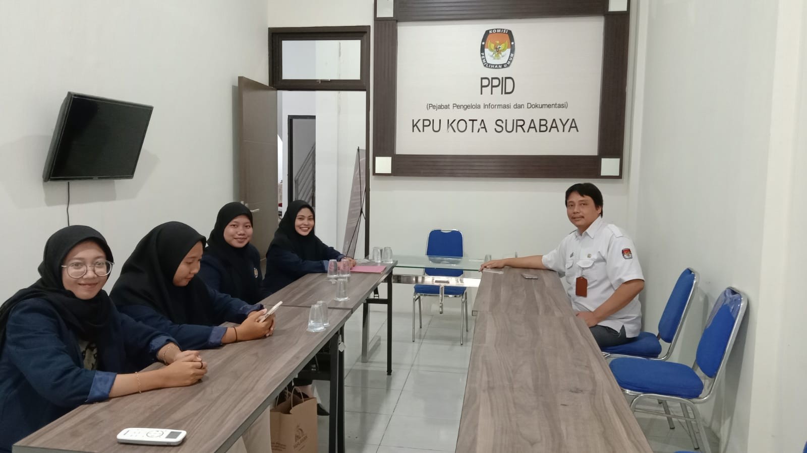 Surabaya, http://kota-surabaya.kpu.go.id - Senin (11/9), KPU Surabaya menerima kunjungan observasi mahasiswa Fakultas Ekonomika dan Bisnis (FEB) Universitas Negeri Surabaya (Unesa). Kegiatan yang berlangsung di ruang Pejabat Pengelola Informasi dan Dokumentasi (PPID) ini diikuti oleh 4 mahasiswa program studi Pendidikan Administrasi Perkantoran, yaitu Rodiatul Adawiyah Nursirotim, Izzatun Nadliroh, Hani’atur Rosyidah, dan Emilda Echa Noor Olivia.