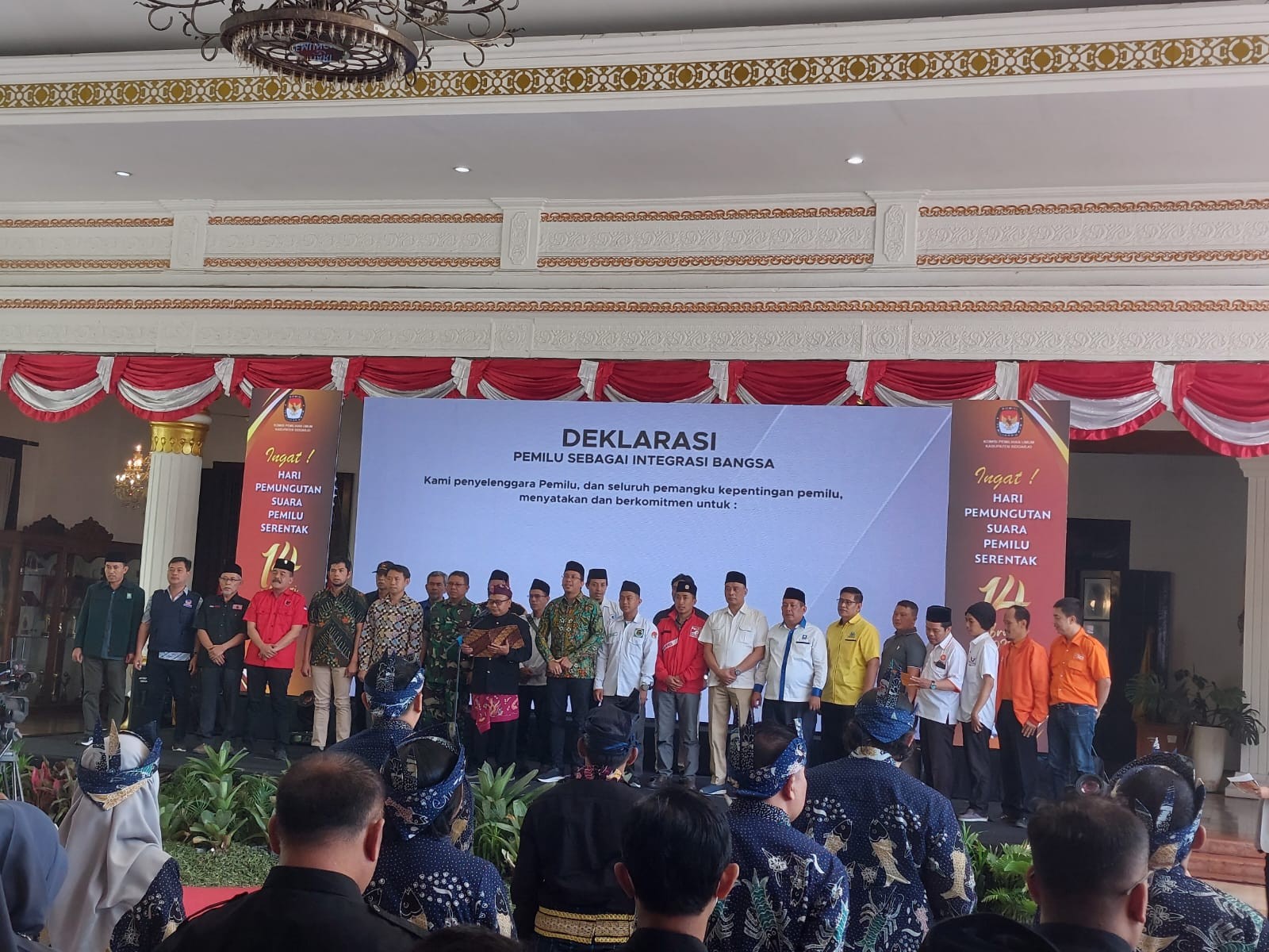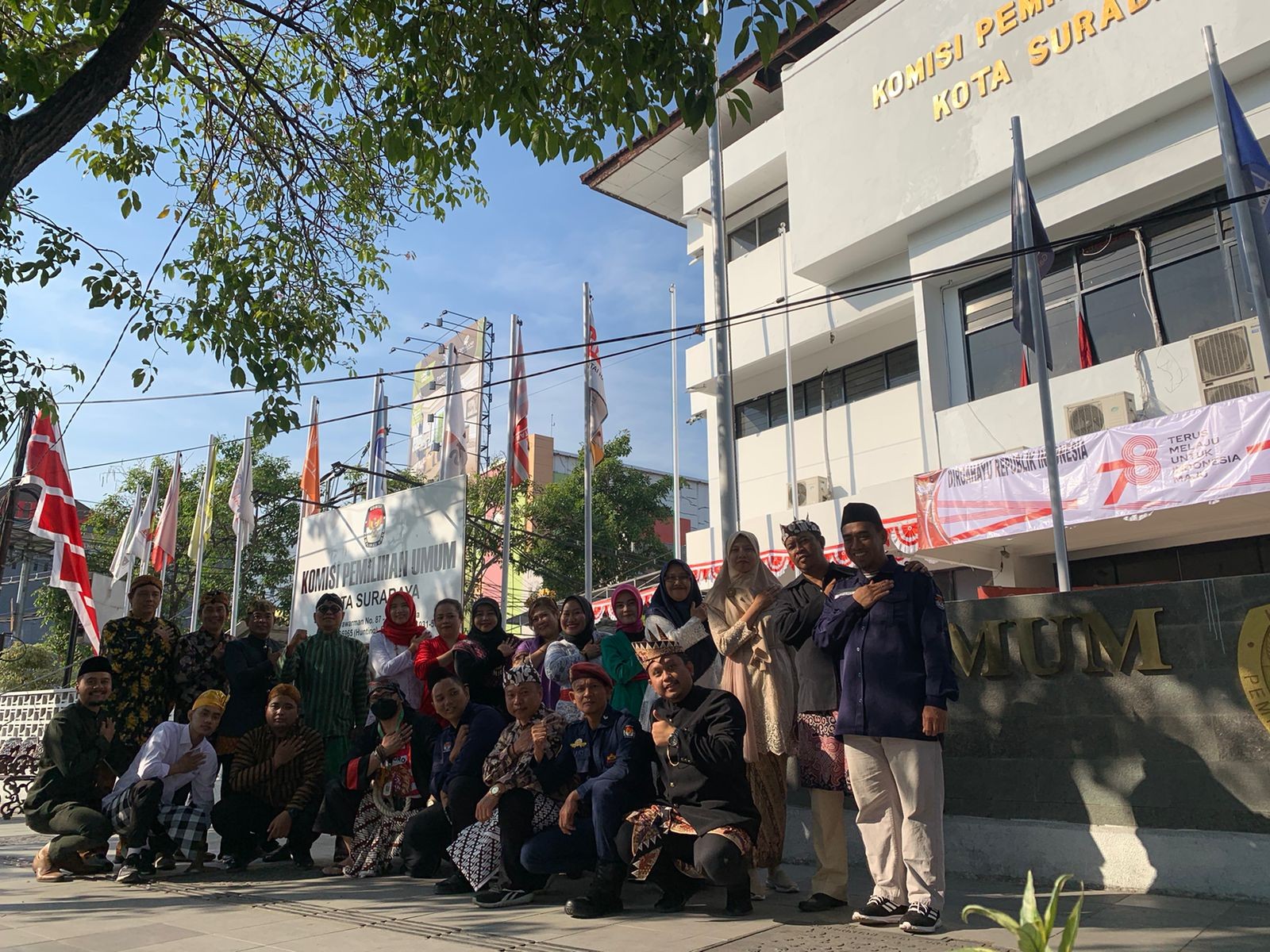 Surabaya, http://kota-surabaya.kpu.go.id - Minggu (12/8), KPU Surabaya menghadiri kegiatan Serah Terima Bendera Kirab Pemilu Tahun 2024 Jalur V dari KPU Makassar ke KPU Sidoarjo. Kegiatan perdana jalur V di Jawa Timur ini dihadiri oleh Anggota Divisi Sosialisasi, Pendidikan Pemilih, Partisipasi Masyarakat dan Sumber Daya Manusia serta Sekretaris KPU Kabupaten/Kota se-Jawa Timur yang dilalui jalur kirab bendera Pemilu Tahun 2024. Ketua KPU Jawa Timur, Choirul Anam dalam sambutan pembukanya meminta agar KPU Sidoarjo beserta KPU Kabupaten/Kota yang lain mengoptimalkan kegiatan sosialisasi berbagai segmen selama pelaksanaan kirab bendera Pemilu Tahun 2024. "Tingkatkan partisipasi pemilih melalui sosialisasi dan pendidikan pemilih ke berbagai segmen, pemilih pemula hingga masyarakat," pesan Choirul Anam. Kegiatan yang berlangsung sejak pukul 8 pagi di Pendopo Delta Wibawa Sidoajo turut dihadiri KPU Sulawesi Selatan, Bupati Sidoarjo bersama Forkopimda Sidoarjo serta Partai Politik Peserta Pemilu tahun 2024 tingkat Sidoarjo. Di penghujung acara, seluruh peserta kegiatan membacakan Deklarasi Pemilu sebagai Integrasi Bangsa.