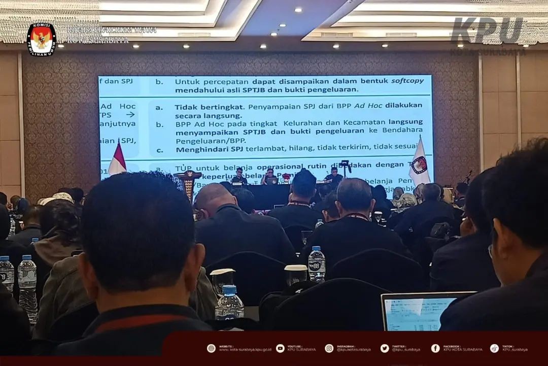 Surabaya, http://kota-surabaya.kpu.go.id - Selasa (20/6), KPU Surabaya menghadiri kegiatan Rapat Kerja Teknis Pengelolaan Pertanggungjawaban dan Rekonsiliasi Dana Tahapan Pemilu 2024 serta Pengawasan Internal di Lingkungan KPU Provinsi dan KPU Kabupaten/Kota. Kegiatan yang berlangsung selama 3 hari ini dihadiri oleh pejabat KPU Provinsi dan KPU Kabupaten/Kota se-Indonesia, antara lain Sekretaris, Kepala Subbagian Keuangan, Umum, dan Logistik, serta Bendahara Pengeluaran. Kegiatan Rapat Kerja Teknis dilaksanakan untuk menyiapkan arahan dengan disiplin dan tepat waktu agar penyampaian laporan keuangan semakin baik kedepannya, serta mewujudkan salah satu fokus KPU untuk menyusun petunjuk teknis penyaluran dan pertanggungjawaban penggunaan dana tahapan pemilu bagi badan ad hoc. Karena pertanggungjawaban penggunaan dana tahapan pemilu oleh badan ad hoc merupakan satu kesatuan yang tidak dapat dipisahkan dari pertanggungjawaban pejabat perbendaharaan pada satuan kerja induk dan secara organisasi menjadi tanggungjawab KPU. Dengan pelaksanaan Rapat Kerja Teknis ini diharapkan dapat meningkatkan pertanggungjawaban penggunaan dana tahapan pemilu oleh badan ad hoc melalui serangkaian perbaikan agar pengelolaan dan pertanggungjawaban keuangan menjadi lebih efisien, efektif, transparan dan akuntabel.