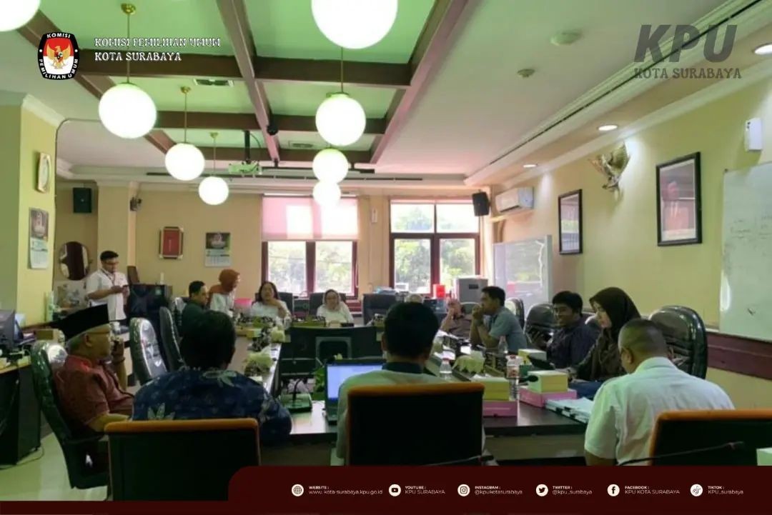 Anggota KPU Surabaya, Soeprayitno turut menyampaikan bahwa saat ini KPU Surabaya melaksanakan tahapan verifikasi administrasi dokumen bakal calon Anggota DPRD. Sedangkan Anggota KPU Surabaya lainnya, Naafilah Astri Swarist menyampaikan mengenai tahapan pemutakhiran data pemilih, dimana saat ini sedang memeriksa data ganda.