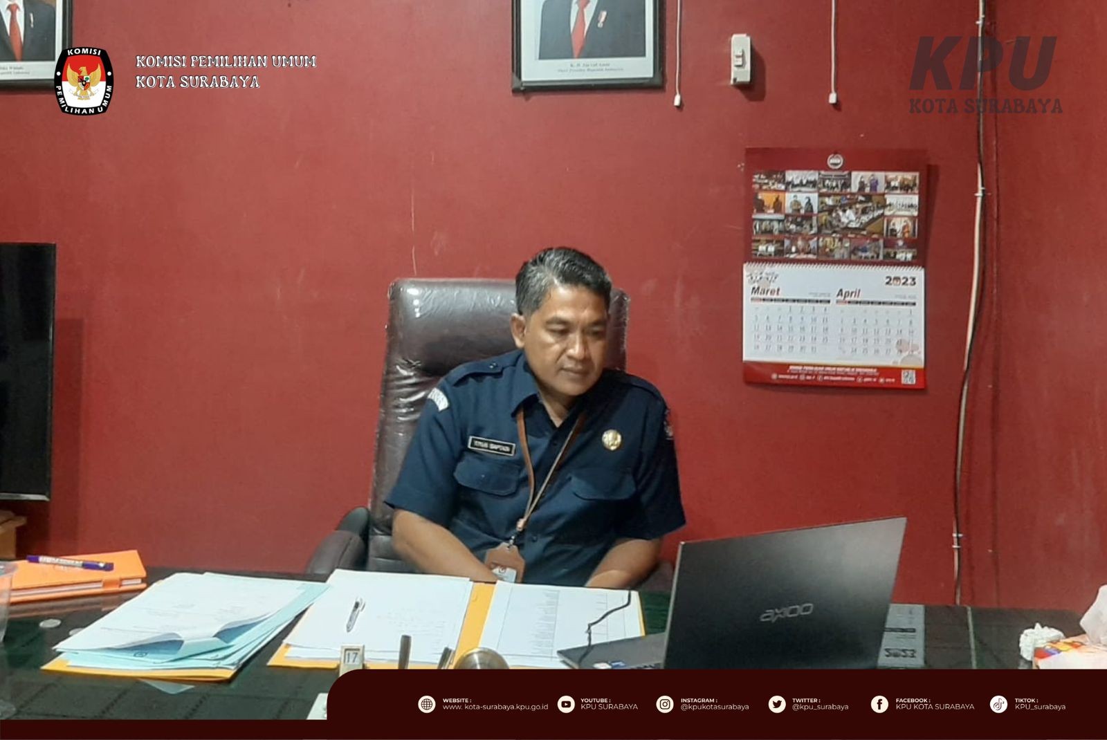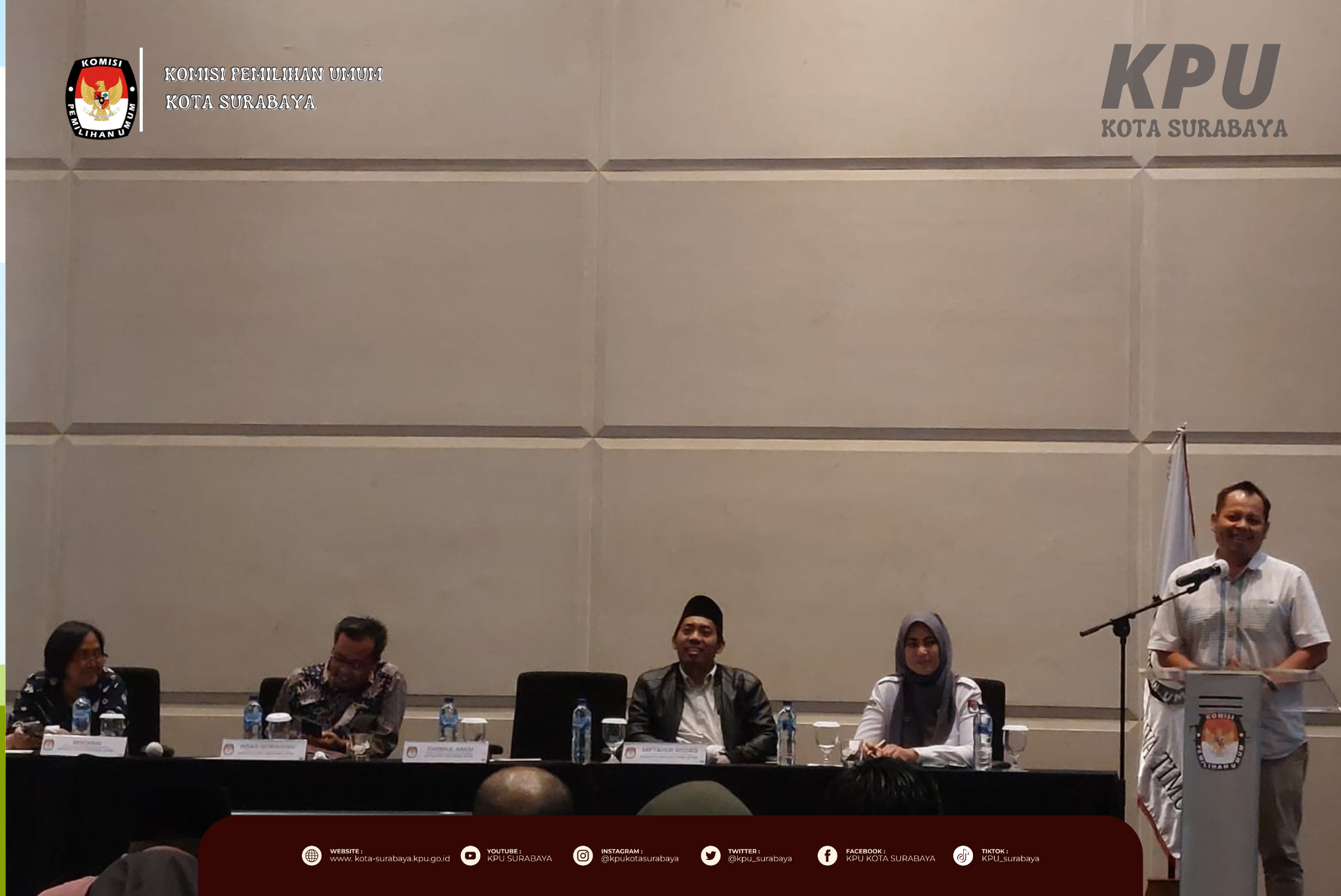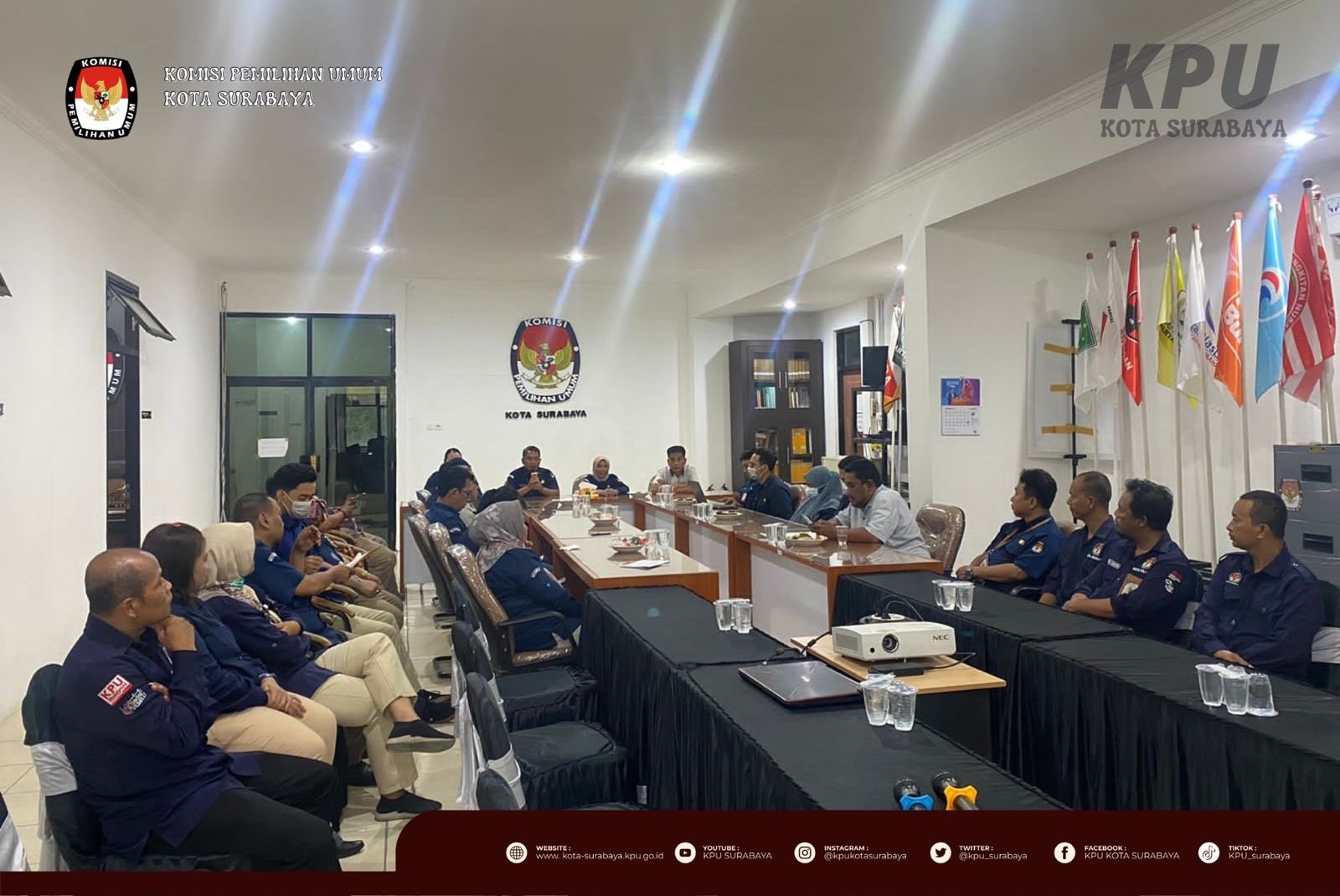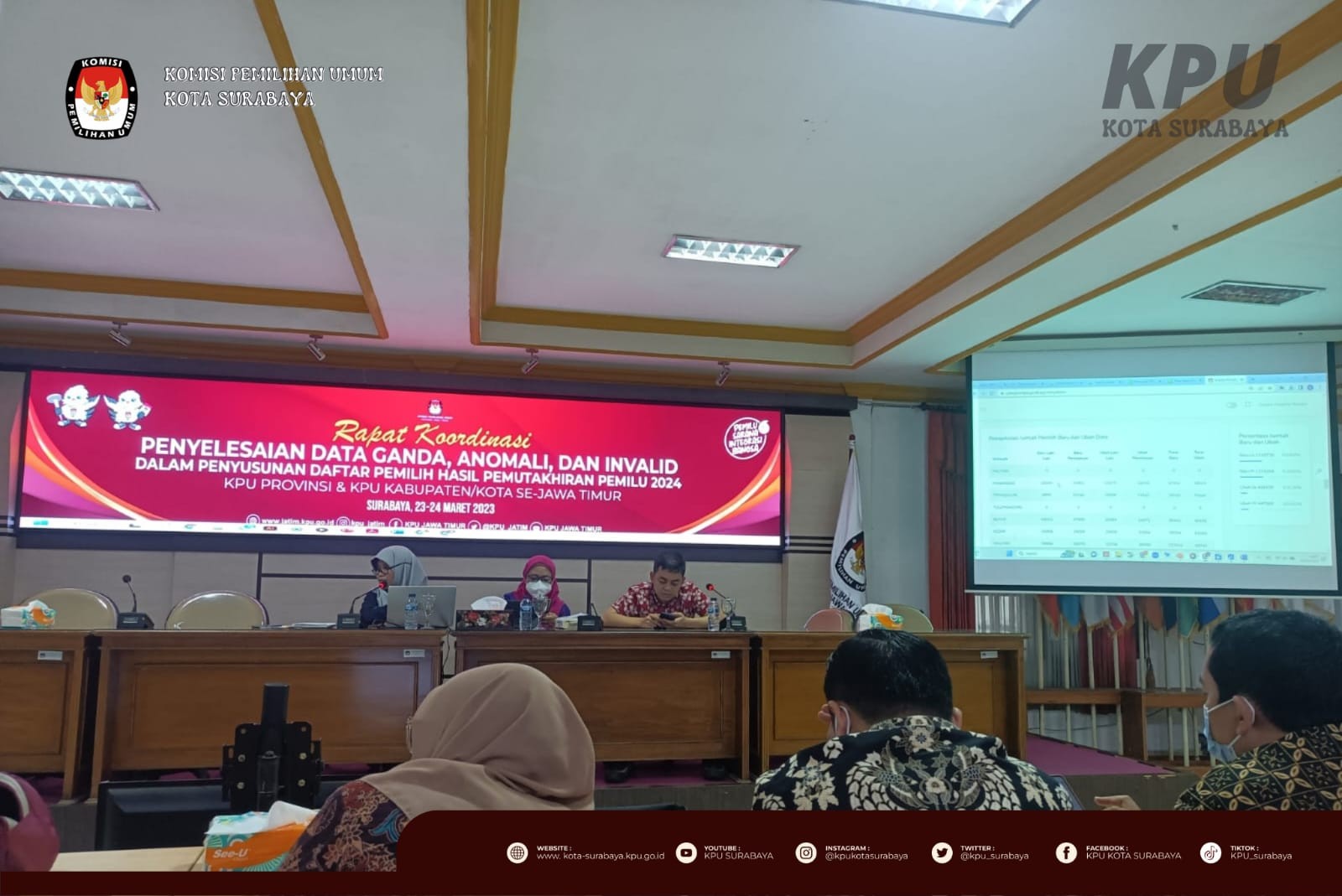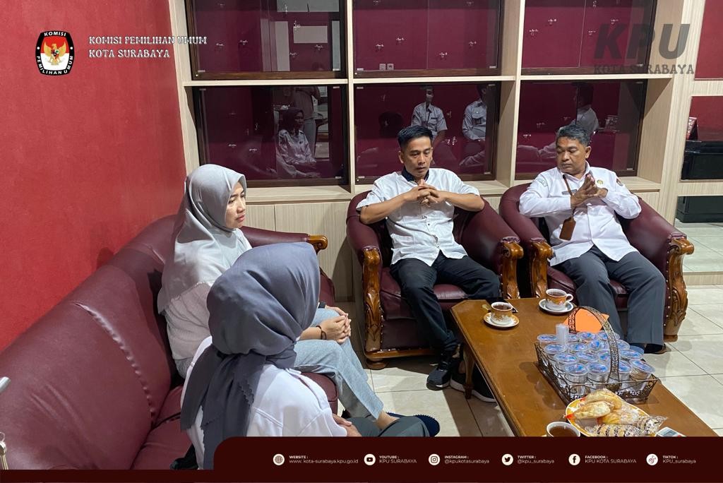 Surabaya, kota.surabaya.kpu.go.id - Selasa (21/3), KPU Surabaya menyambut kunjungan Kepala Biro Sumber Daya Manusia KPU RI, Yuli Hartati di kantor KPU Surabaya. Kegiatan yang berlangsung selama 1,5 jam ini turut dihadiri Sekretaris, Kepala Bagian Hukum dan Sumber Daya Manusia, serta Kepala Subbagian Partisipasi dan Hubungan Masyarakat KPU Jawa Timur serta Ketua, seluruh Anggota, Sekretaris, seluruh Kasubbag, dan seluruh staf KPU Surabaya.