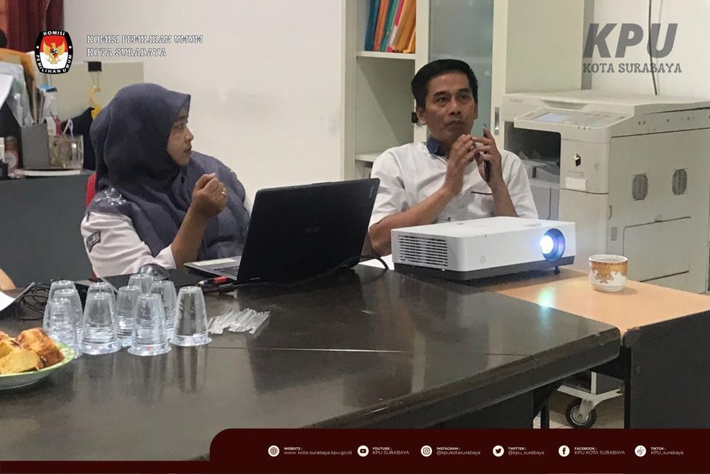 Dilanjutkan dengan pemaparan materi oleh Anggota KPU Surabaya, Naafilah Astri Swarist mengenai perkembangan hasil pelaksanaan coklit yang sebelumnya telah dilaporkan secara berkala, serta KPU Surabaya akan melakukan monitoring terhadap wilayah-wilayah yang masih rendah capaian coklitnya.