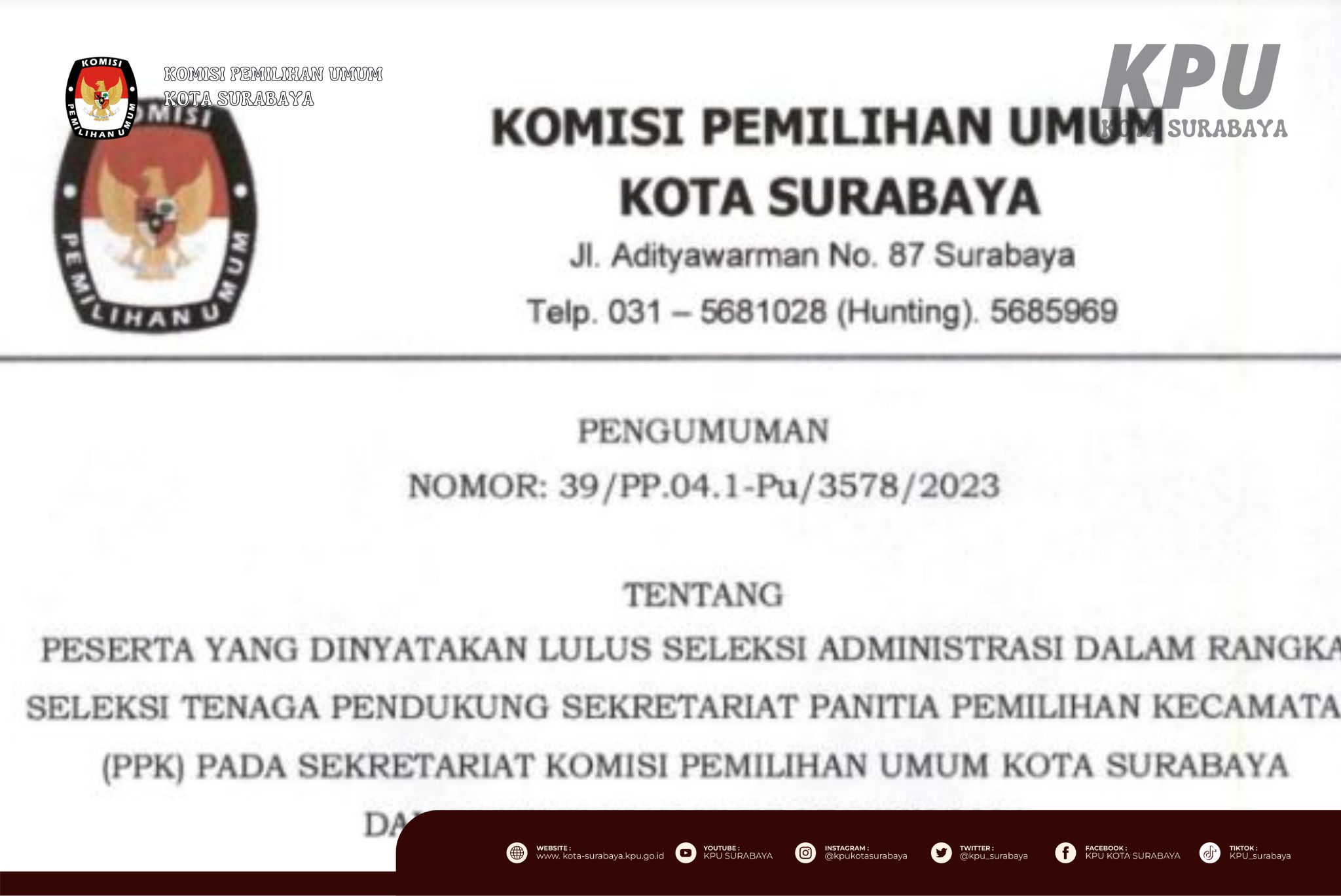 Surabaya, kota-surabaya.kpu.go.id - Kamis (2/3), KPU Surabaya menggelar seleksi wawancara dalam Tenaga Pendukung Sekretariat Seleksi Wawancara Tenaga Pendukung Sekretariat Panitia Pemilihan Kecamatan (PPK) se-Kota Surabaya. Sebanyak 93 peserta dijadwalkan mengikuti kegiatan yang merupakan lanjutan dari proses seleksi administrasi sebelumnya.