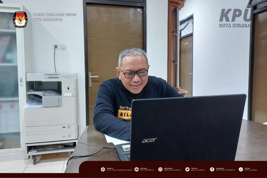 Surabaya, kota-surabaya.kpu.go.id - sabtu (25/2), KPU Surabaya menghadiri Rapat Koordinasi Pelaksanaan Verifikasi Faktual Kesatu Dukungan Minimal Pemilih bakal Calon Anggota Dewan Perwakilan Daerah (DPD) Pemilu tahun 2024.