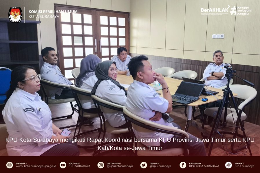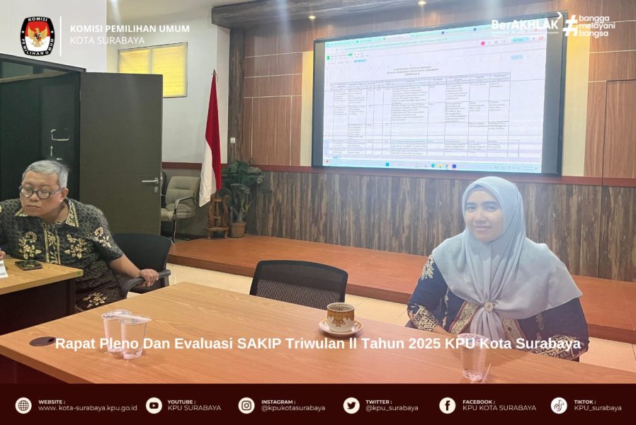 KPUSBY-Pemilih KPU Kota Surabaya melaksanakan rapat pleno rutin mingguan sekaligus evaluasi SAKIP Triwulan II Tahun 2025. Rapat dipimpin langsung oleh Soeprayitno selaku ketua KPU Kota Surabaya dan Komisioner, Sekretaris, Kasubag dan jajaran Sekretariat KPU Kota Surabaya. Pleno rutin kali ini selain membahas evaluasi dari kegiatan yang sudah terlaksana dan merencanakan kegiatan berikutnya adalah evaluasi SAKIP triwulan II tahun 2025. Divisi Perencanaan, Data, dan Informasi, Naafilah Astri Swarist memberikan masukan terhadap SAKIP triwulan II melalui pemenuhan dokumen dan langkah-langkah perbaikan yang mengacu dari penilaian dan evaluasi SAKIP periode sebelumnya untuk meningkatkan capaian hasil SAKIP berikutnya meliputi pengelolaan data pemilu dan Pilkada sebagai bagian dari persiapan evaluasi akhir tahun. "Pengiriman buku laporan tahapan Pilkada saat ini sedang berlangsung dan sebagian telah didistribusikan." ujar Titus Saptadi Sekretaris KPU Surabaya menyampaikan salah satu laporan pada pleno rutin kali ini. Dalam rapat disampaikan hasil evaluasi akuntabilitas kinerja melalui pemenuhan dokumen dan evaluasi rutin semester II 2025 yang difokuskan pada perbaikan LKE SAKIP 2024 untuk hasil yang lebih baik dan terukur dan langkah konkret dilakukan dengan pelengkapan dokumen, monitoring triwulan, hingga peningkatan koordinasi dan komunikasi lintas subbagian yang disampaikan oleh kepala sub bagian perencanaan, data dan informasi Endah Yuli.(DKK)
