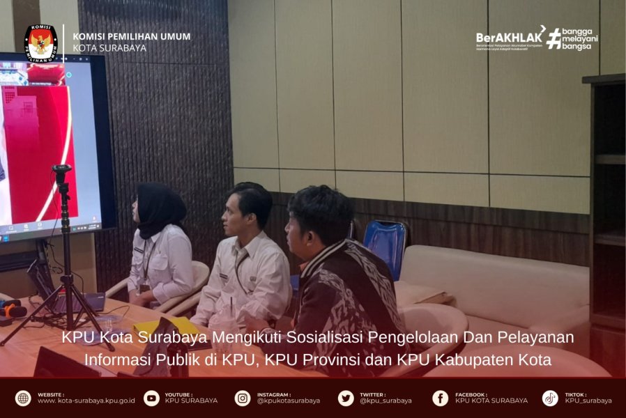 Komisi Pemilihan Umum (KPU) Kota Surabaya mengikuti kegiatan Sosialisasi Pengelolaan dan Pelayanan Informasi Publik di KPU, KPU Provinsi, dan KPU Kabupaten/Kota yang diselenggarakan oleh KPU RI secara daring pada Rabu, 25 Juni 2025. Kegiatan ini bertujuan untuk mengoptimalkan pelayanan dan pengelolaan Pejabat Pengelola Informasi dan Dokumentasi (PPID), termasuk e-PPID. Selain itu, kegiatan sosialisasi ini juga merupakan implementasi dari Peraturan KPU Nomor 11 Tahun 2024 Tentang Perubahan Atas Peraturan KPU Nomor 22 Tahun 2023 tentang Pengelolaan dan Pelayanan Informasi Publik di KPU, KPU Provinsi, dan KPU Kab/Kota. Kegiatan dibuka dengan sambutan dari Deputi Bidang Dukungan Teknis, Eberta Kawima. Beliau menyampaikan tentang pentingnya pengelolaan informasi dan dokumentasi dalam rangka menjamin transparansi dan akses informasi publik. Kegiatan dilanjutkan dengan penyampaian materi oleh Kepala Bagian Humas KPU RI, Reni Rinjani. Dalam materinya, beliau menekankan tentang kewajiban PPID KPU, KPU Provinsi dan KPU Kabupaten/Kota untuk melakukan pelayanan informasi terhadap setiap permohonan yang masuk untuk menjamin transparansi dan akuntabilitas informasi publik. Materi dilanjutkan dengan panduan teknis Operator e-PPID dan tanya jawab seputar sistem e-PPID. Kegiatan sosialisasi kemudian ditutup oleh Kepala Biro Partisipasi dan Hubungan Masyarakat, Cahyo Ariawan. Kegiatan ini diikuti oleh Hendri Afrianto selaku Kasubbag Partisipasi Masyarakat dan Sumber Daya Manusia, Staf, serta Calon Pegawai Negeri Sipil (CPNS). Selain itu, Subairi selaku Anggota KPU Kota Surabaya Divisi Sosialisasi Pendidikan Pemilih, Partisipasi Masyarakat, dan Sumber Daya Masyarakat juga turut mengikuti kegiatan sosialiasasi PPID yang diadakan KPU RI tersebut. Diharapkan dengan adanya sosialisasi PPID ini, pelayanan dan pengelolaan informasi publik dapat lebih berkualitas, cepat, dan tepat dalam menanggapi kebutuhan publik.