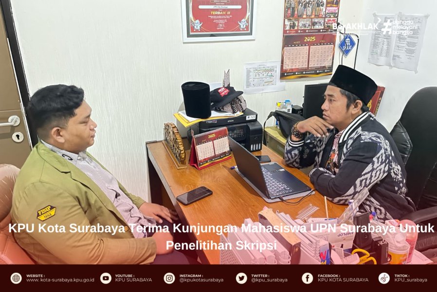 KPUSBY- KPU Kota Surabaya menerima kunjungan dari salah satu mahasiswa Universitas Pembangunan Nasional (UPN) Veteran Jawa Timur, Rozak, yang tengah melakukan penelitian skripsi terkait tahapan Pemilihan Kepala Daerah (Pilkada) 2024. Kunjungan ini berlangsung di kantor KPU Surabaya dan diterima langsung oleh perwakilan komisioner pada hari Rabu 5 Maret 2025. Kunjungan ini bertujuan untuk menggali lebih dalam proses penyelenggaraan Pilkada 2024, termasuk tahapan-tahapan penting dan upaya sosialisasi yang telah dilaksanakan oleh KPU Surabaya. Dalam kesempatan tersebut, Rozak melakukan wawancara dengan salah satu komisioner KPU Kota Surabaya untuk memperoleh data yang dibutuhkan dalam penelitiannya. Komisioner Parmas Sodiklih KPU Kota Surabaya, Pak Bairi, menyampaikan bahwa KPU Surabaya selalu terbuka bagi mahasiswa yang ingin melakukan penelitian akademik, terutama yang berkaitan dengan demokrasi dan kepemiluan. “Kami mendukung penuh kegiatan penelitian yang dapat memberikan kontribusi bagi pengembangan ilmu pengetahuan, khususnya di bidang kepemiluan,” ujar Pak Bairi. Rozak mengungkapkan bahwa penelitian ini bertujuan untuk menganalisis efektivitas tahapan Pilkada 2024 serta tantangan yang dihadapi dalam penyelenggaraannya. “Saya sangat mengapresiasi keterbukaan KPU Surabaya dalam memberikan informasi dan membantu proses penelitian saya,” ujar Rozak. Dengan adanya kerjasama antara KPU Surabaya dan dunia akademik, diharapkan penelitian ini dapat memberikan wawasan baru terkait penyelenggaraan pemilu di tingkat daerah serta menjadi bahan evaluasi untuk meningkatkan kualitas pemilu di masa mendatang.RM(DKK)