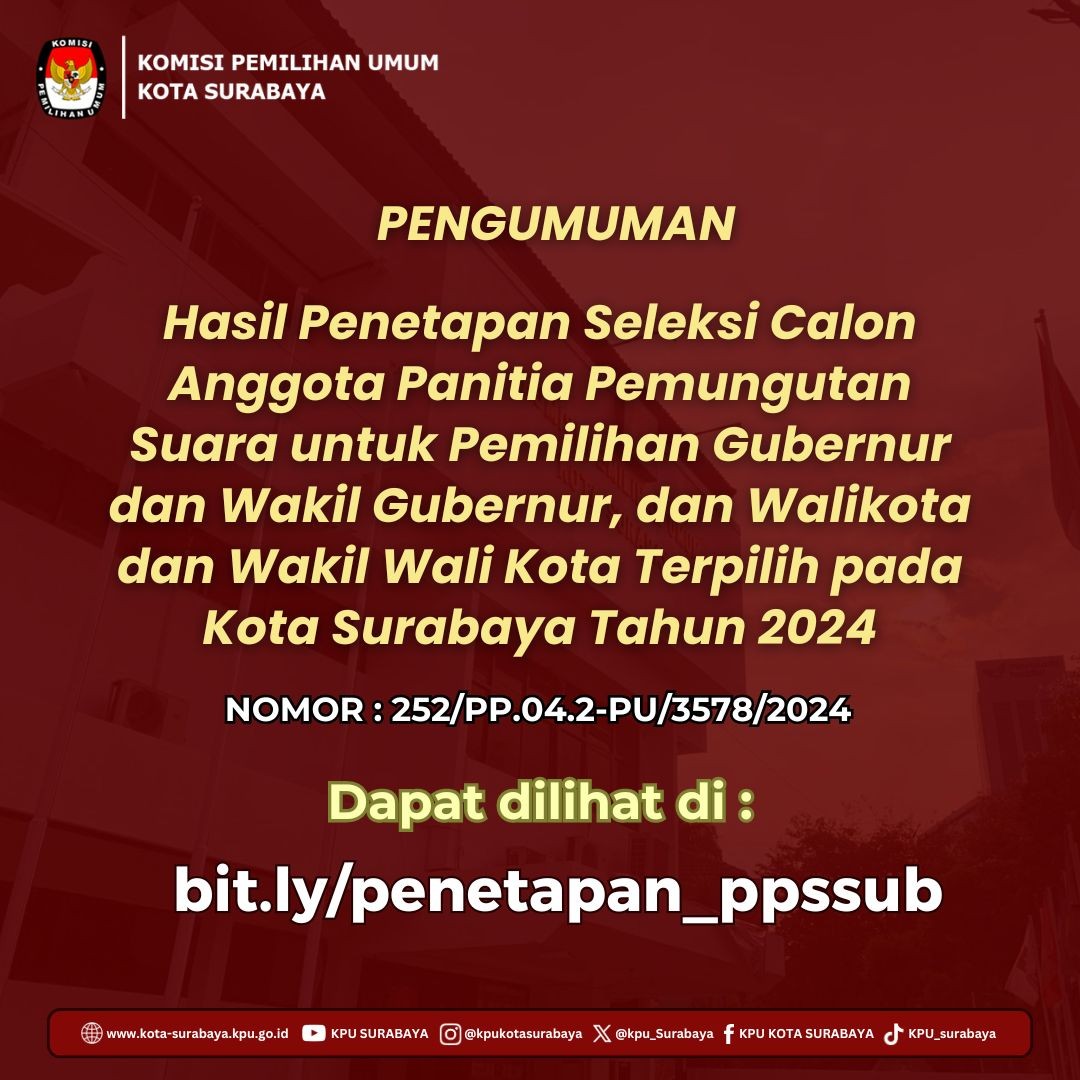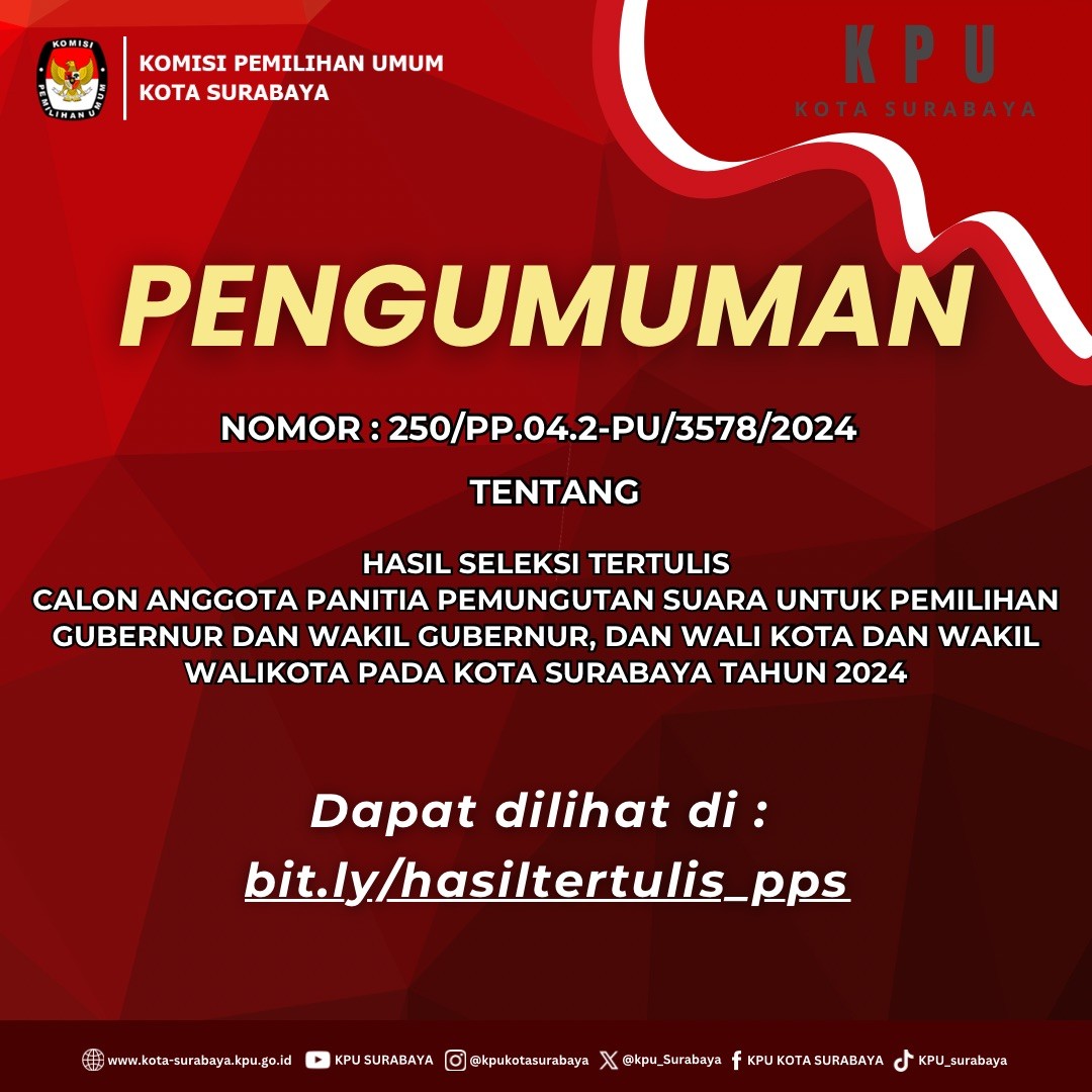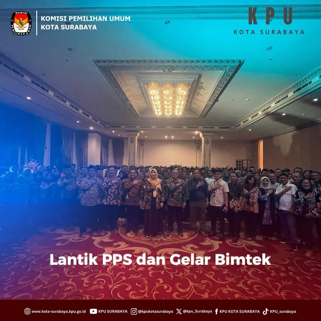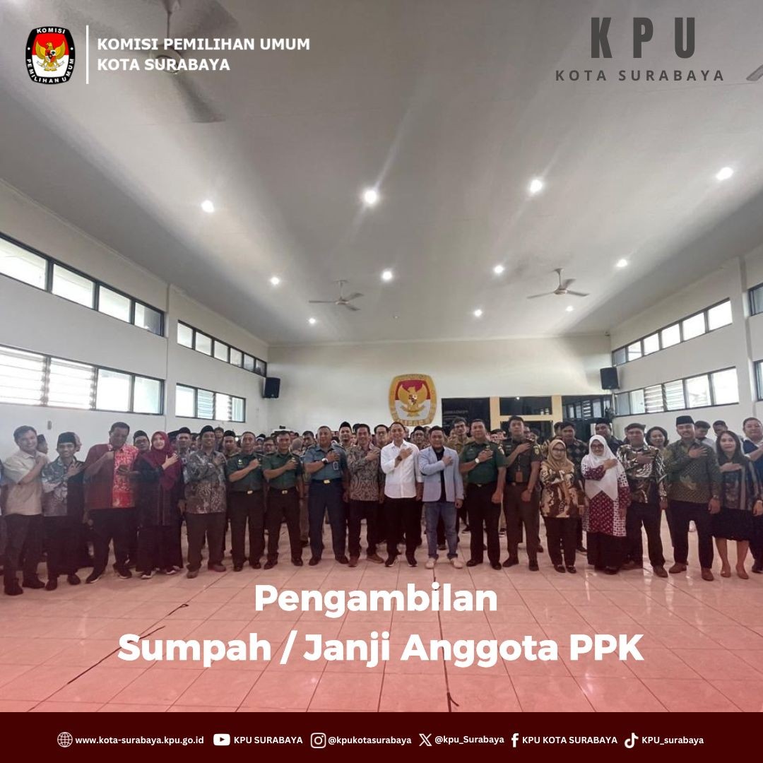 Surabaya, https://kota-surabaya.kpu.go.id - Kamis (16/5), KPU Surabaya menggelar Pengambilan Sumpah/Janji Anggota Panitia Pemilihan Kecamatan (PPK) Pemilihan Gubernur dan Wakil Gubernur Jawa Timur serta Walikota dan Wakil Walikota Surabaya Tahun 2024. Kegiatan yang berlangsung di Graha Swara KPU Surabaya ini dihadiri oleh Walikota beserta Kepala Badan Kesatuan Bangsa dan Politik, hingga perwakilan dari Lantamal V, Polrestabes, Polres Pelabuhan Tanjung Perak, dan Kejaksaan Negeri.