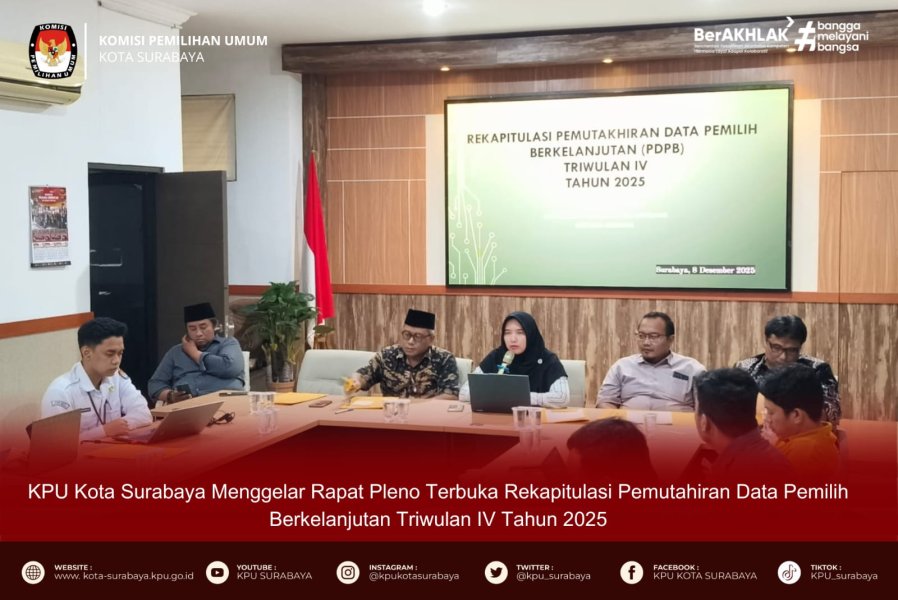 KPUSBY-Komisi Pemilihan Umum (KPU) Kota Surabaya mengadakan Sosialisasi Kearsipan kepada ASN KPU Kota Surabaya, bertempat di lantai 2 Kantor KPU Kota Surabaya, pada Kamis, 11 Desember 2025.