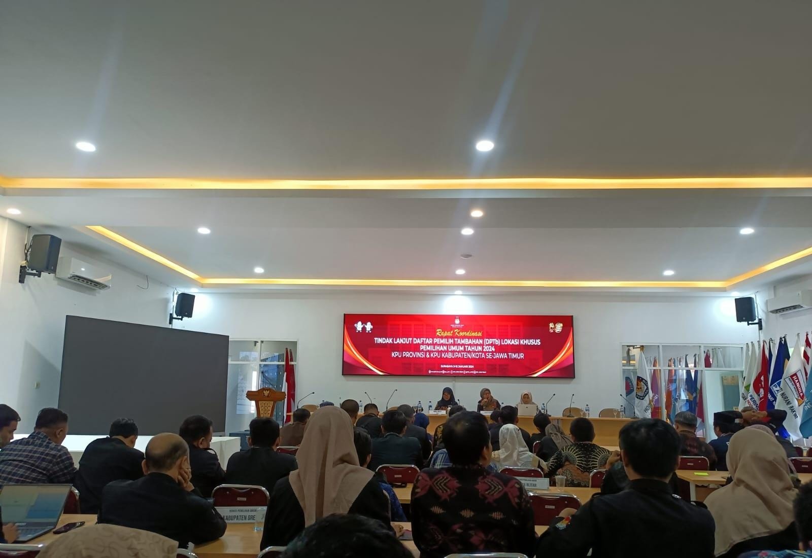 Surabaya, http://kota-surabaya.kpu.go.id - Rabu (10/1), KPU Surabaya menghadiri Rapat Koordinasi Tindak Lanjut Daftar Pemilih Tambahan (DPTb) Lokasi Khusus Pemilu Tahun 2024. Kegiatan yang berlangsung 2 hari sejak kemarin (9/11) ini dihadiri oleh Anggota Divisi Perencanaan, Data dan Informasi, Kepala Sub Bagian Perencanaan, Data dan Informasi, serta Operator Sidalih KPU Kabupaten/Kota se-Jawa Timur.