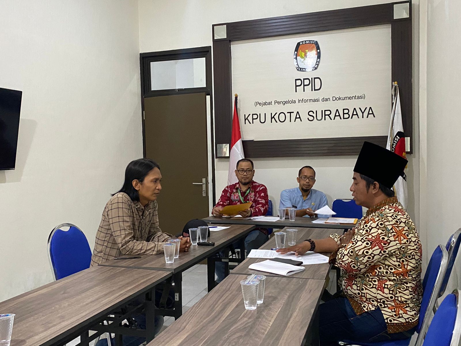 Surabaya, http://kota-surabaya.kpu.go.id – Jumat (3/11), KPU Surabaya melakukan klarifikasi terhadap 2 Calon Anggota Panitia Pemilihan Suara (PPS) Pengganti yang berasal dari PPS Tanjungsari, Sukomanunggal, PPS Semolowaru, Sukolilo, PPS Wiyung, Wiyung dan PPS Ketintang, Gayungan. Klarifikasi yang berlangsung sekitar 1 jam ini digelar di kantor KPU Surabaya.