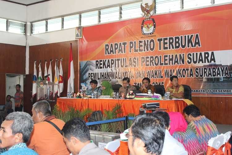 Sebagai warga kota Surabaya, kita bersyukur kepada Allah SWT bahwa walaupun diawali dengan susah payah tahapan pendaftaran dan penetapan pasangan calon walikota/wakil walikota untuk Pilkada berintegritas 9 Desember 2015 sudah dapat dilalui, sehingga pada akhirnya Partai Politik di kota Surabaya mampu menghadirkan 2 pasangan calon. Sejalan dengan tahapan Pilkada 2015, proses pemungungutan dan penghitungan suara 9 Desember 2015 di 3.936 TPS hingga rekapitulasi KPU Kota Surabaya dan penetapan Walikota/Wakil Walikota terpilih berjalan sangat lancar. Untuk mengawal kelancaran penyelenggaraan Pilkada 2015 itu, KPU Kota Surabaya telah mengeluarkan 68 Keputusan.