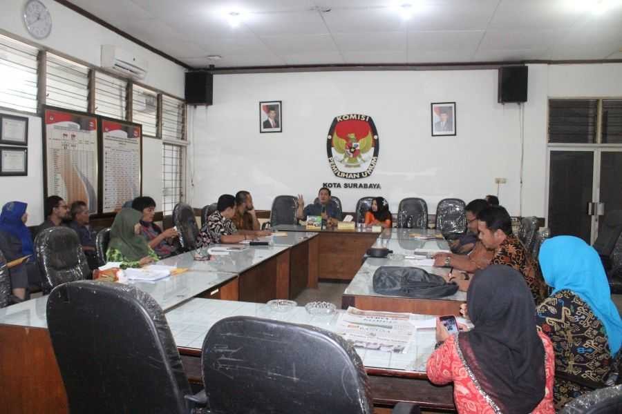 Hupmas, SURABAYA- Meskipun telah usai, penyelenggaraan Pemilihan Walikota dan Wakil Walikota tahun 2015 beserta segala dinamikanya memang selalu menarik perhatian. Kemarin, (Senin, 27/06/2016), KPU Kota Surabaya mendapat tamu dari KPU Provinsi Gorontalo. Kedatangan mereka bertujuan untuk bertukar wawasan mengenai penyelenggaraan Pilkada. Komisioner KPU Provinsi Gorontalo Divisi Perencanaan, Keuangan, Logistik, Umum, Rumah Tangga dan Organisasi, Selvi Katili mengatakan, KPU Surabaya dianggap sebagai penyelenggara yang sukses menghelat Pilkada pada tahun 2015 lalu. Karena Provinsi Gorontalo akan melaksanakan Pilkada pada tahun 2017, maka KPU Provinsi Gorontalo ingin belajar mengenai beberapa hal terkait Pilkada kepada KPU Surabaya. ”Kedatangan kami ke KPU Surabaya, ingin mengetahui bagaimana pemeriksaan kesehatan pasangan calon walikota dan wakil walikota Surabaya pada Pilkada yang lalu, bagaimana komunikasi dengan partai politik terutama saat pencalonan, dan bagaimana KPU Surabaya melakukan sosialisasi,” kata perempuan berjilbab tersebut. Menanggapi hal tersebut, Ketua KPU Surabaya, Robiyan Arifin mengatakan bahwa sebenarnya setiap daerah memiliki permasalahan tersendiri. ”Masing-masing daerah pasti punya solusi yang berbeda sesuai kondisi di wilayahnya. Semoga, tukar wawasan ini dapat memperkaya pengetahuan dan bermanfaat untuk kita semua,” kata Robiyan. Selanjutnya, Komisioner KPU Surabaya Divisi Hukum, Pengawasan, Organisasi, dan SDM, Purnomo Satriyo Pringgodigdo menjelaskan mengenai pemeriksaan kesehatan pasangan calon walikota dan wakil walikota Surabaya. Purnomo menerangkan, standar pemeriksaan kesehatan telah ditentukan oleh Ikatan Dokter Indonesia (IDI) Pusat. ”IDI dan KPU RI telah menandatangani MoU tentang hal tersebut dan telah diturunkan ke kabupaten/kota,” papar Purnomo. Pria asli Surabaya itu menambahkan, IDI Jawa Timur telah merekomendasikan tiga rumah sakit di Surabaya, Malang, dan Jember untuk melakukan pemeriksaan kesehatan pasangan calon. ”Kami, 17 KPU kabupaten/kota yang menyelenggarakan Pilkada 2015, sepakat melakukan pemeriksaan kesehatan di Rumah Sakit dr. Soetomo Surabaya,” ungkap Purnomo. Sedangkan besaran biaya pemeriksaan kesehatan pasangan calon, sesuai standar yang telah diumumkan oleh Rumah Sakit Dr. Soetomo. Mengenai komunikasi dengan partai politik pada saat pencalonan, Purnomo menjelaskan bahwa setiap KPU Surabaya akan membuka tahapan pendaftaran pasangan calon, partai politik pasti diundang untuk sosialisasi mengenai persyaratan calon dan pencalonan. Sementara untuk kegiatan sosialisasi dalam rangka peningkatan partisipasi masyarakat, Komisioner KPU Surabaya Divisi Sosialisasi, Pendidikan Pemilih, dan Pengembangan Informasi, Nur Syamsi memaparkan bahwa KPU Surabaya memanfaatkan momen peliknya pencalonan sebagai sarana sosialisasi. ”Panjangnya tahapan pencalonan malah menjadi sarana bagi kami untuk menginformasikan kepada masyarakat bahwa akan ada Pilkada di Kota Surabaya,” jelas Nur Syamsi. Selain itu, lanjut Nur Syamsi, KPU Surabaya bekerjasama dengan berbagai stakeholder, misalnya tokoh masyarakat, tokoh pemuda, dan tokoh agama. ”Kami memohon bantuan pemuka agama, tokoh pemuda, dan ormas menghimbau khalayaknya untuk berpartisipasi dalam Pilkada Surabaya,” kata Nur Syamsi. Dengan upaya tersebut, partisipasi pemilih di Surabaya naik 8 persen, yaitu 51,34 persen dibanding saat Pilkada 2010