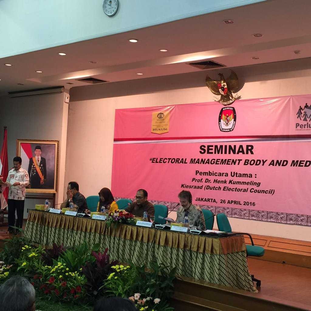 Selain Ibu Titi Anggraeni (Direktur Eksekutif Perludem), dan Bapak Budiman Tanuredjo (Pemimpin Redaksi Kompas) ada Prof. Dr. Henk Kummeling (Guru Besar Hukum Tata Negara Universitas Utrecht dan Chairman of the Electoral Council of the Netherland/Ketua KPU Belanda) sebagai pembicara. Dalam kesempatan ini, Beliau menjelaskan profil dari KPU di Belanda.