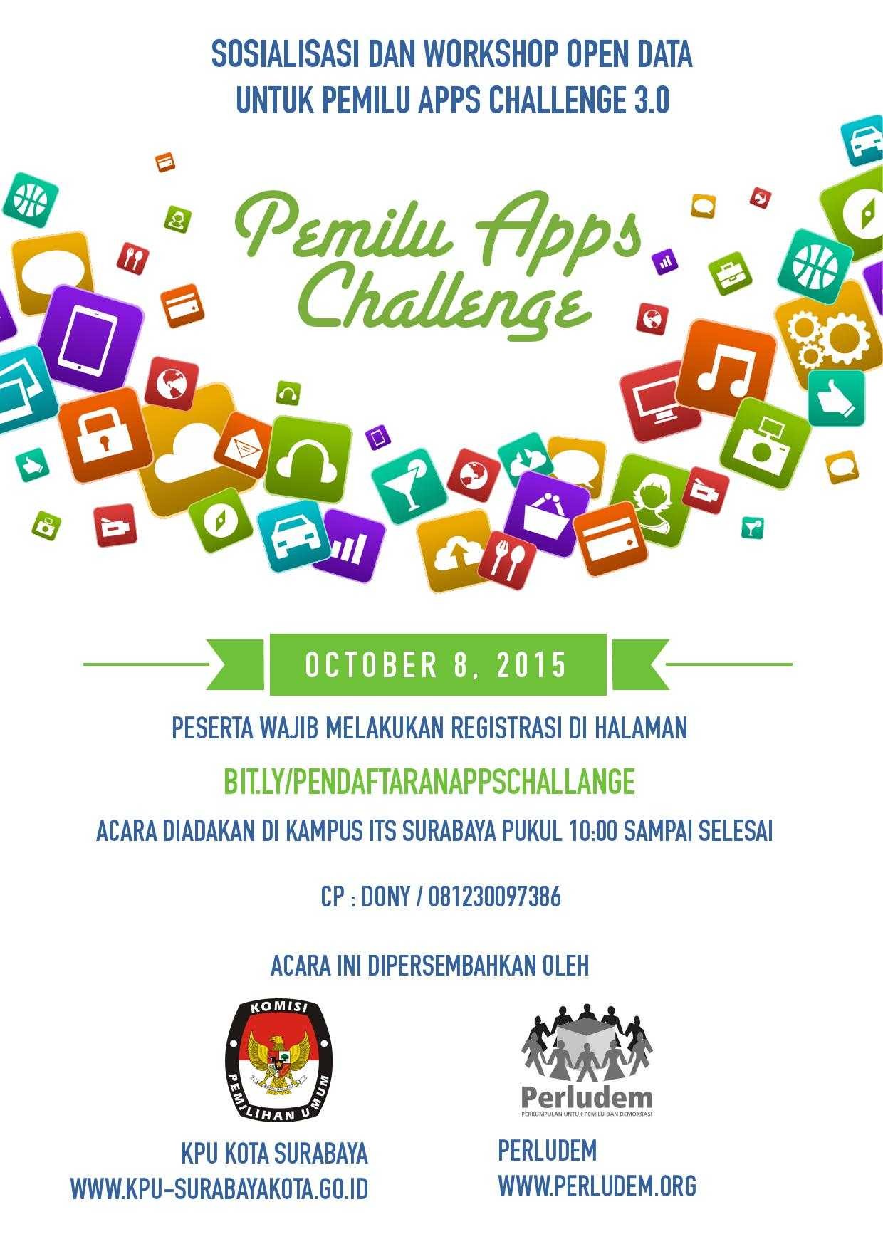 KPU dan Perludem Tanda Tangani MoU Data Terbuka Sekaligus Launching Pahlawan Muda Apps Challenge, Code for Vote 3.0Perlombaan Aplikasi Pilkada Walikota Surabaya UPDATE! Kabar Gembira untuk kamu yang ingin mengikuti #PahlawanMuda Apps Challenge tapi masih belum selesai menyelesaikan aplikasi. Kamu bisa mengumpulkan Mockup / Desain Contoh / Demo / Prototype saja sebelum tanggal 7 November, dan jangan lupa tuliskan fitur fitur apps kamu ya. Kemudian jika Mockup / Desain Contoh / Demo / Prototype Apps kamu sesuai dengan tema Pilwali Surabaya, kemungkinan besar kamu bisa mengikuti Penjurian pada tanggal 15 November di Telkom Ketintang Surabaya. Jadi sebelum tanggal 15 November 2015 Segera Finalisasi Apps Kamu ya Hupmas Media Center- Komisi Pemilihan Umum Kota Surabaya bersama Perkumpulan untuk Pemilu dan Demokrasi (Perludem) melakukan penandatangan MoU. Penandatanganan Mou ini bertujuan untuk melanjutkan upaya keterbukaan data dan informasi dengan meningkatkan keterbukaan informasi menjelang pilkada serentak. MoU ini sekaligus sebagai tindak lanjut atas MOU sebelumnya yang dibuat oleh KPU RI dan Perludem tentang akses/implementasi data terbuka, sosialisasi, dan pendidikan pemilih. Sosialisasi mengenai keterbukaan informasi yang dimaksud dalam MoU tersebut kemudian diejawantahkan dalam bentuk perlombaan aplikasi untuk Pilkada Walikota (Pilwali) Surabaya yang bertajuk “Pahlawan Muda Apps Challenge, Code for Vote 3.0”. Perlombaan ini adalah perlombaan yang pertama kali dilakukan di Indonesia oleh jajaran penyelenggara Pemilu dengan menggunakan prinsip Open Data. Data terbuka yang dimaksud adalah data yang secara bebas dapat digunakan dan didistribusi ulang, termasuk dipadukan dengan kumpulan data lainnya. Hal ini sejalan dengan semangat keterbukaan yang tertuang dalam PKPU No.5 Tahun 2015 tentang Sosialisasi dan Partisipasi Masyarakat pasal 50 Ayat 1 dan 2 bahwa KPU Provinsi/KIP Aceh atau KPU/KIP Kabupaten/Kota memberikan akses data dan informasi yang bersifat terbuka kepada Pemilih dan data serta informasi sebagaimana dimaksud dapat ditayangkan pada laman KPU, KPU Provinsi/KIP Aceh dan/atau KPU/KIP Kabupaten/Kota dalam bentuk format data yang bisa diolah. Terdapat serangkaian kegiatan yang akan dilakukan sejak launching yang dilakukan hari ini, yaitu pendaftaran dan pengumpulan aplikasi sejak 13 hingga 23 Oktober 2015, kemudian penjurian tahap awal oleh KPU Kota Surabaya dan Perludem untuk memilih 30 tim terbaik mulai dari 23 Oktober 2015- 28 Oktober 2015. Selanjutnya, pengumuman 30 tim terbaik akan diumumkan tepat pada hari Sumpah Pemuda tanggal 28 Oktober 2015, untuk selanjutnya mengikuti kegiatan penjurian semifinal dan final pada tanggal 1 November 2015. Kompetisi yang bertemakan Pahlawan Muda ini sengaja dibuat untuk meningkatkan partisipasi masyarakat khususnya generasi muda untuk memanfaatkan data-data terbuka dan membantu pemilih untuk memilih berdasarkan informasi yang ada. Ketua KPU Kota Surabaya Robiyan Arifin mengatakan, Pahlawan Muda Apps Challenge merupakan bentuk komitmen kuat KPU Kota Surabaya dalam keterbukaan data dan informasi untuk mendorong perluasan partisipasi Pilkada 2015. “Ini bukti bahwa kami siap melaksanakan keterbukaan informasi,” ungkap Ketua KPU Kota Surabaya Robiyan Arifin. Sebagaimana semangat para pahlawan dan pejuang yang melahirkan Sumpah Pemuda dahulu, demi tercapainya Indonesia yang lebih baik, KPU Kota Surabaya percaya bahwa generasi muda yang cekatan dan tanggap teknologi kini dapat berkontribusi demi Indonesia yang lebih baik melalui penggunaan teknologi, data dan media sosial. “Kami mengharapkan partisipasi di dalam Pemilu kini berkembang tidak hanya berbentuk aktivitas memilih di TPS tapi juga bagaimana masyarakat terlibat aktif di dalam tahapan sebelum Pilkada seperti pendidikan pemilih dan pemantauan serta tahapanpasca-keterpilihan calon hasil Pilkada,” tambah Komisioner KPU Kota Surabaya Purnomo Satriyo Pringgodigdo. Bagi Perludem, perlombaan pembuatan aplikasi di Kota Surabaya dapat menyebarkan antusiasme open data kepada developer-developer di banyak wilayah dan tidak hanya berfokus di Jakarta dan sekitarnya. “Sebelumnya, partisipasi dari kalangan programmer komputer dan IT developer IT serta pegiat open data sangat tinggi saat Perludem menyelenggarakan kompetisi Aplikasi Pemilu, yang telah dua kali diselenggarakan sebelum momen Pemilu Legislatif dan Pilpres tahun 2014 lalu,” ucap Direktur Eksekutif Perludem, Titi Anggraini di Surabaya (13/10). Prinsip data terbuka merupakan langkah lanjutan dari keterbukaan informasi, prinsip ini tidak hanya berbicara tentang hak atas informasi publik tetapi juga berbicara tentang teknis layanan dan penggunaan perangkat yang tidak eksklusif misalnya di dalam format yang mudah diolah dan dapat dibaca oleh mesin. Selain itu juga lisensi untuk menggunakan data dan jumlah data yang dapat diunduh membedakan open data dengan keterbukaan data lainya. Program API Pemilu yang dikelola oleh Perludem adalah salah satu wujud open data platform untuk informasi pemilu Indonesia yang akan digunakan sebagai media untuk menyediakan banyak aplikasi dan website dalam mengakses data pemilu. Perludem dan partner secara terbuka dan bebas memberikan akses data tanpa biaya apapun. Data-data yang disediakan akan disajikan dalam format terbuka dan mudah digunakan kembali, tidak hanya untuk meningkantkap partisipasi masyarakat tetapi juga transparansi dan akuntabilitas. API sendiri singkatan dari Application Programming Interface yang memberikan kemudahan dalam berbagi data, memesan kembali, dan pengolahan dengan aplikasi dari pihak ketiga (IT Developer dan programmer) mengenai informasi pemilu yang tersedia untuk masyarakat. Untuk mengakses data-data dalam bentuk API ini dapat menuju ke http://pemiluapi.org atau langsung ke web KPU Kota Surabaya (www.kpu-surabayakota.go.id). “Aktivitas open data dan kompetisi aplikasi di Pemilu 2014 berhasil meningkatkan partisipasi warga. Kami mengharapkan keberhasilan KPU dalam membuka